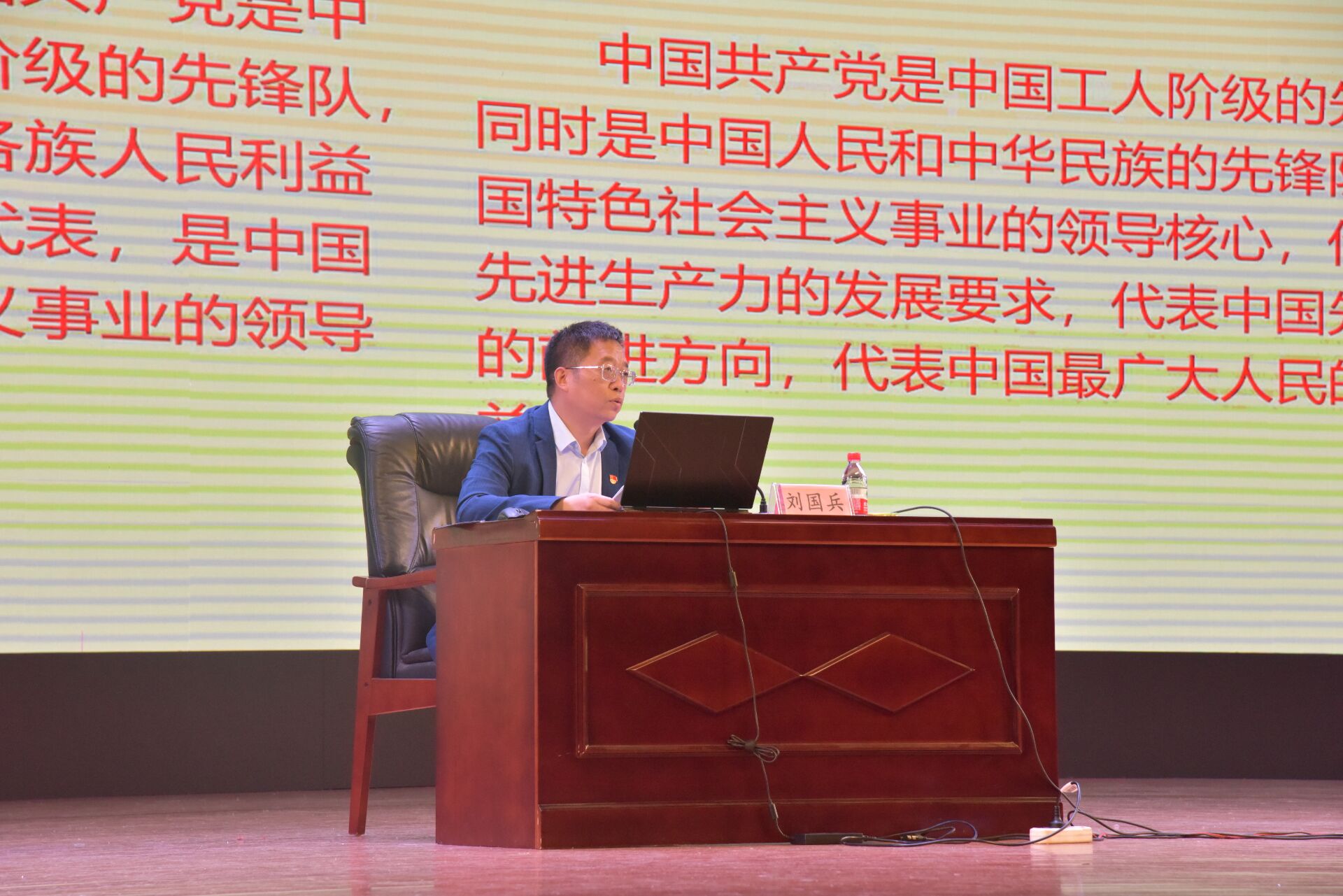 会议内容共分奏唱国歌,开班仪式和老师授课三部分。会议伊始,全体起立奏唱国歌,国歌声落,各学院领导人做出开班指导,并对在座的全体同学给予鼓励和希望,强调同学们要以此为起点,努力提高政治素质和修养,拿出入党的态度和一位党员应有的精神。紧接着,刘国兵为同学们讲授入党知识,以视频的形式回顾十年期间党取得的成就,由此开篇,就党的性质为大家解答疑惑,口传心授,要求同学们从党的行动中汲取智慧,认真学习党的品质。会议结束后,同学们按要求写下自己的听课感悟和所学收获。