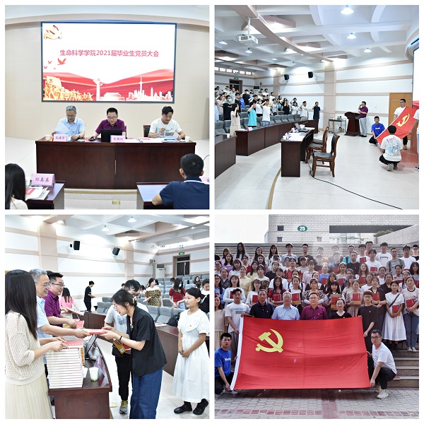 张朝阳首先结合党史向大家讲述了从1902年河南大学堂的创建辗转波折到现在的校史,列举了历任校长为建校做出的不懈努力,以及王人杰、时经训、秉志等精英校友的事迹,他希望毕业生党员们能够传承兴农基因,不忘红色初心。而后,院长吴建宇细数了袁隆平、李振声和吴绍骙等中国绿色革命领军人物为我国农业发展做出的贡献,并号召毕业生们遵守学术道德,弘扬老一辈科学家的精神,带领毕业生党员们回顾了四年来党的成长历程,并对毕业生党员今后的学习工作提出了四点希望:一是要保持初心,一心向党;二是要肩负使命,脚踏实地;三是要砥砺奋进,勇往直前;四是要争当先锋,奉献社会。他敦促大家坚持以更高的标准要求自己,以更加坚定的信念、优良的品德、丰富的知识、过硬的本领努力担负起历史赋予的重任。刘展介绍了毕业生党员管理相关要求,并提醒各位毕业生党员真正把组织的关怀培养和老师的谆谆教诲化作今后不断前行的动力,力争成为青年一代之楷模。随后,张朝阳带领毕业生党员宣誓,与院领导为毕业生党员发放党史书籍《红船映初心 》。