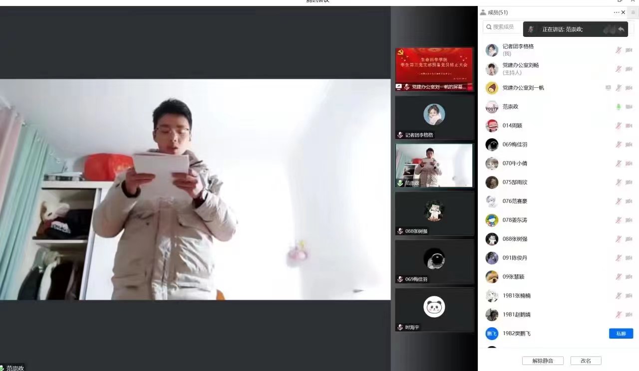 会议严格按照党组织所规定的预备党员接收及预备党员转正的程序进行。会议伊始,各支部发展对象逐一宣读《入党志愿书》,并向党组织介绍自身情况,阐述入党动机,由各支部组织委员及宣传委员向大会报告各自发展对象现实表现考察以及综合政治审查情况,与会党员对发展对象是否符合党员条件发表意见,经与会中共正式党员举手投票表决,大会一致同意接收沈欣悦等36名同志成为中共预备党员。随后,各预备党员逐一宣读《转正申请书》,汇报近期在思想、学习、工作、生活方面的情况,并向党组织申请批准转正。由各支部组织委员及宣传委员介绍各预备党员在预备期间表现,并表明是否同意其按期转为正式党员的意见。经与会中共正式党员举手投票表决,大会一致同意王晨羽等46名同志如期转为中共正式党员。会议最后,预备党员及转正党员在各支部书记的带领下进行庄严宣誓。各党支部书记宣布支部大会决议并对新党员作出要求,希望各预备党员加强政治知识学习,增强专业能力,积极向党组织靠拢,向优秀共产党员学习并树立先锋模范作用,以实际行动为党做出贡献。