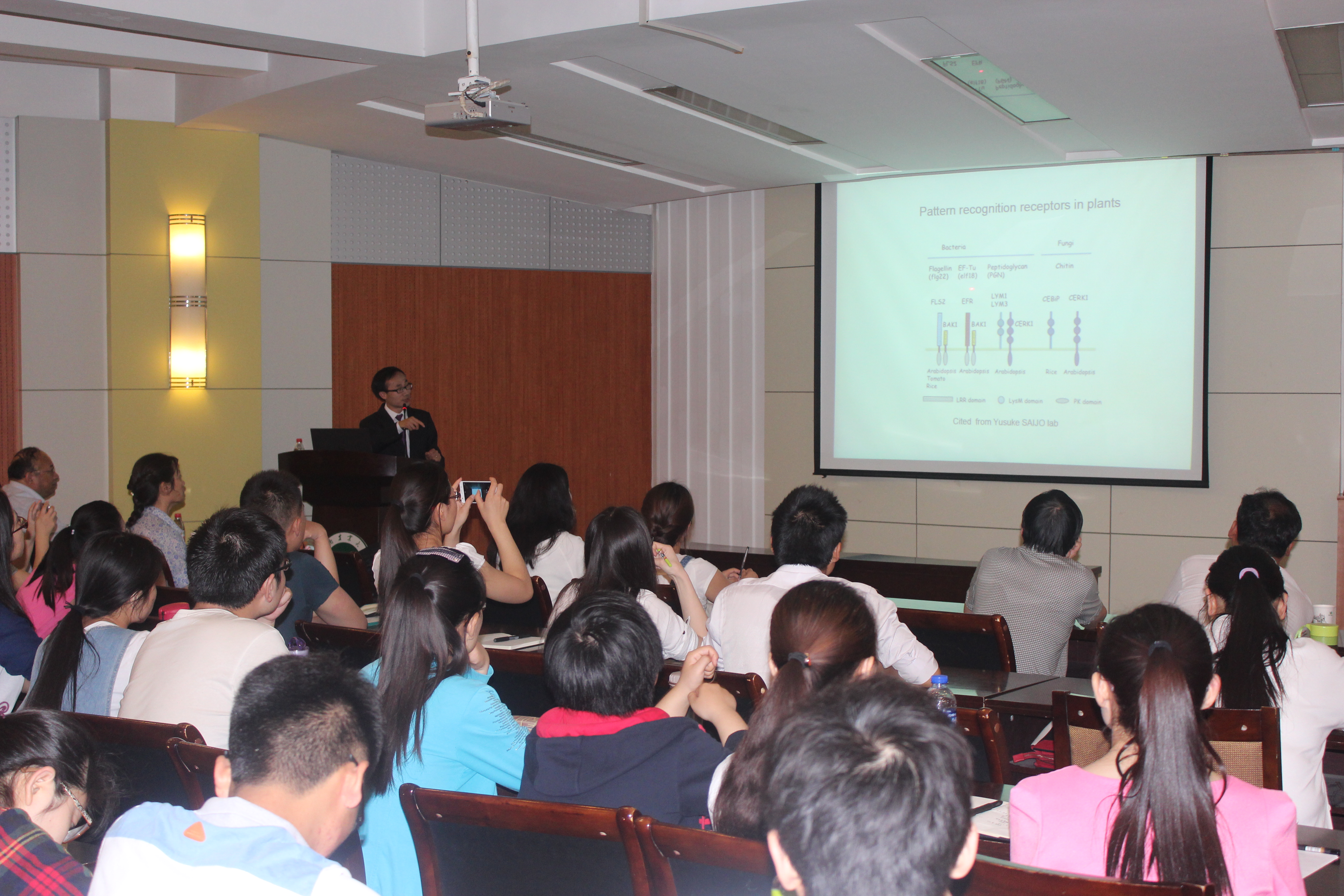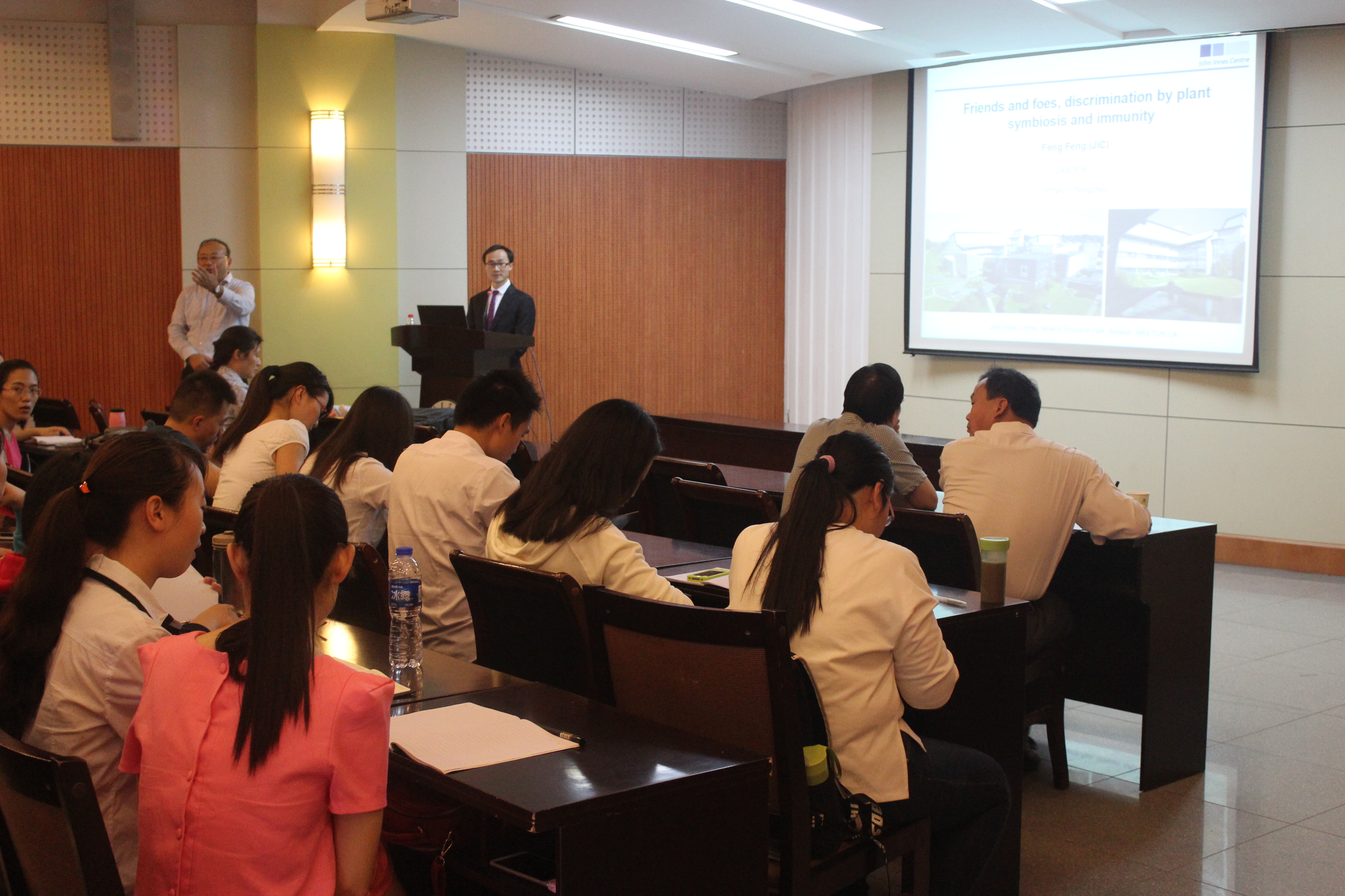 文化路校区校礼堂100人报告厅,冯峰博士做了题为《Friends and foes,discrimination by plant symbiosis and immunity》的学术报告,参加报告会的有生命科学、农学院、植物保护等学院的广大师生。冯锋博士长期从事植物和病原微生物以及共生真菌互作的研究,试图阐明植物天然免疫和共生信号转导的分子机理,主要研究成果以第一作者在Nature、Cell host & microbe, Current opinion in plant biology等期刊发表,主持国家自然科学基金面上项目一项,并于2012年获得吴瑞奖学金。报告会上,冯博士结合自己的科研项目,详细讲述了影响植物共生和免疫物质作用的机理等相关知识,并热情与师生探讨学术报告的相关问题,激发了老师和研究生的科研热情。