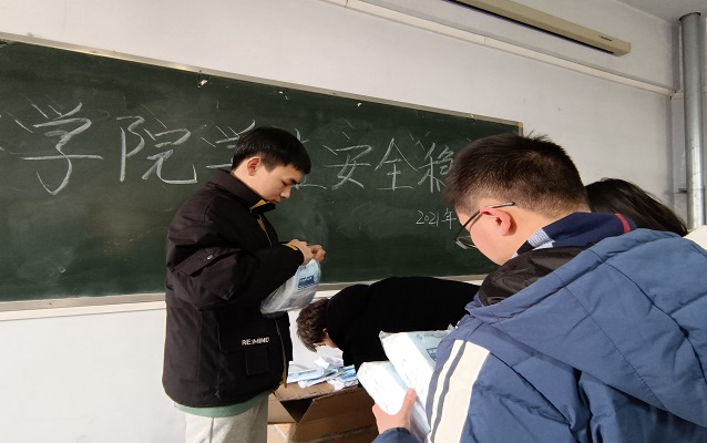 首先,刘展从放假离校时间安排和加强学生疫情防控教育入手,告诫同学们一定要做好疫情防控、安心学习,在做好个人防控的同时顺利完成期末大考,安全有序地离校,为本学期的学校生活画上圆满的句号。接着,张晶围绕学生安全教育和假期具体工作安排,细致地向同学们讲解了寒假期间相关注意事项。第一是要求各班在离校前召开安全教育主题班会,教育班级同学科学防护、放平心态、积极应对期末考试;要求所有同学按时、如实进行健康信息填报,严格落实常态化防控举措。第二是提醒学生严禁组织集体旅游、打工等行为;假期回乡期间严格遵守交通规则;遵守当地法律法规,维护良好的社会秩序;正确看待、处理宗教问题,切实做到“不信教、不传教”;在落实疫情防控基础上开展“返乡社会实践”。第三是离校前各班对学生宿舍进行全面安全隐患排查,确保切断电源,保持宿舍卫生与安全,按时上交假期去向表。会议最后,学院贴心地为各班级分发口罩等防护物资,保障学生安全,切实做好疫情防控基本工作。