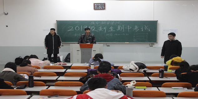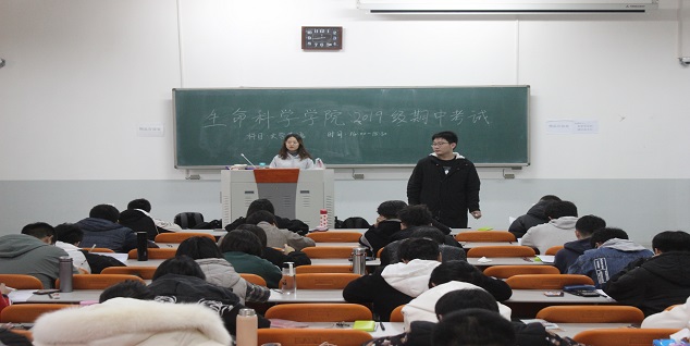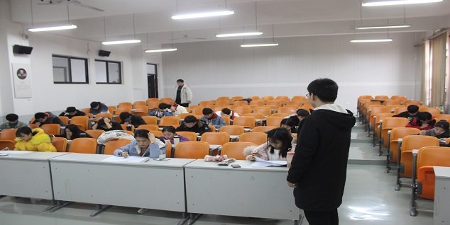 此次考试包括大学英语、普通化学、高等数学三个科目。考试期间,新生助班助教认真监考,各个考场秩序井然,全体新生耐心答题,奋笔疾书。2019级辅导员黄笑老师到考场巡考,要求新生以此检验这半个学期以来的学习成果,诚信作答,总结问题。