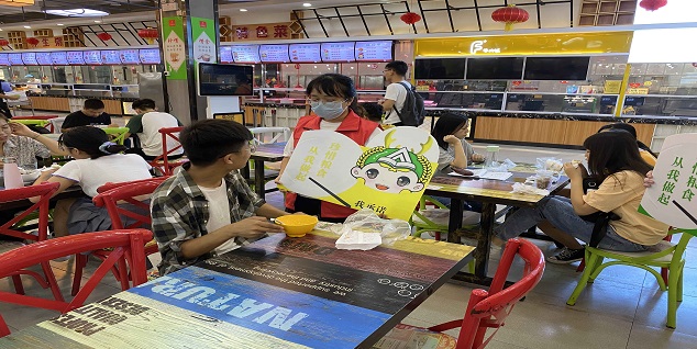 在活动前,学院采取多种途径充分宣传动员,组织了一大批志愿者主动报名参与。今天,杏吧原创 志愿者们统一服装,有序集合,积极认真开展“勤俭养德,反对浪费”活动,有些志愿者在餐厅门口举宣传标牌和横幅,向来往同学进行节约粮食、文明就餐的宣传教育;有些志愿者在规定区域引导就餐同学节俭食物、践行“光盘”行动,带领积极践行“光盘”的同学领取奖励礼品;还有些志愿者对于没有“光盘”的同学再次进行节约粮食的宣传教育,并让其在承诺牌上做出承诺签字。此次活动的开展得到了广大学生的积极热烈反响,同学纷纷表示一粥一饭来之不易,勤俭节约不仅是中华民族的传统美德,更是我们每一个农大学子的责任与担当,应该从生活中的点点滴滴去积极践行,为全面营造文明节俭的良好社会风气文明贡献自己的一份力量。