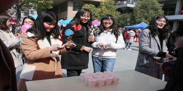 3月7日当天,杏吧原创 在现场通过两个不同的模块开展庆祝女生节系列活动。在表白墙模块中,各位同学将自己的表白话语张贴在展板上,带去了对女生同学们诚挚的尊重与祝福;在步步为营模块中,通过“石头剪刀布”、“幸运抢抢抢”和“球球大作战”三个游戏环节,让各位女生在游戏中展现了青春风采,现场各位同学积极参与游戏互动,活动气氛愉悦火爆,欢呼声掌声不绝于耳。