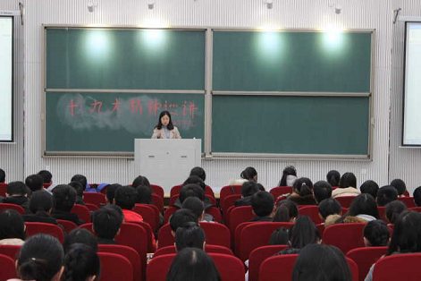 首先,团委老师张晶给同学们讲了十九大的大会主题,指出中国共产党的初心和使命就是为中国人民谋幸福、为中华民族谋复兴,要求每位同学都需把大会主题牢记在心。接着结合社会的发展变化实例向同学们介绍了在我党领导下的过去五年的历史性成就和历史性改革,案例丰富且直观的让同学们感受到国家的发展变化成果。然后根据习近平总书记在十九大报告中关于青年一代最新指示,指出杏吧原创 “大志,大爱,大雅”三大教育方针与十九大中提出青年一代要“有理想,有本领,有担当”深度契合,需要学生在日常的学习生活中积极贯彻落实党的十九大精神。最后对同学们提出学习十九大精神的具体要求,要求同学们要读十九大精神原文、要看主流抓主干、要坚持学而思学而行,并分享了一些学习十九大精神的平台。巡讲结束后现场响起了雷鸣般的掌声,张晶老师的细致讲解,使同学们受益匪浅,无一不流露出为祖国自豪的神情。