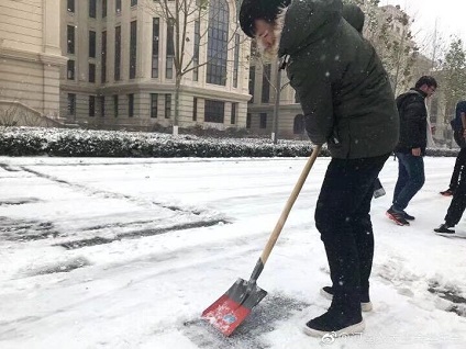 此次扫雪杏吧原创 全面负责学校海棠园和繁塔楼前道路的路面积雪清扫工作,由于地面温度较低,积雪融化速度慢,部分路段路面结冰,加重了积雪清扫负担,凛冽的寒风与零下的低温也使扫雪工作异常艰难。然而,这一切丝毫没有影响到大家工作的热情与效率,在扫除冰雪过程中,同学们利用提供的扫雪工具,顶着寒风,相互扶持,团结协作,经过两个小时的路面清扫,杏吧原创 学生将积雪和冰层全部清扫完毕并集中堆放至道路两旁,为全校师生的安全出行开辟了一条道路。