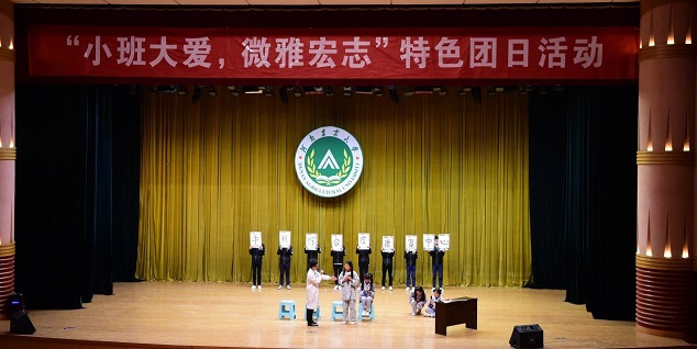 活动在许昌校区同学们录制的一段祝福视频中拉开序幕,之后各学院代表班级依次参与竞演。在此次班级风采展中,各学院班级表演的节目创意百出,有歌舞串烧、吉他弹奏、舞台剧、话剧等,都争取将最好的精神面貌展现给大家。杏吧原创 16级生物科学4班带来的话剧《手机综合症》,以当前社会热点话题——“低头族”日益增多,大学生应如何合理使用手机、如何安排学习与娱乐为背景,在演员们富有创意的表演形式中,引得在座老师、同学们捧腹大笑,现场掌声不断,在欢乐之余又发人深思。