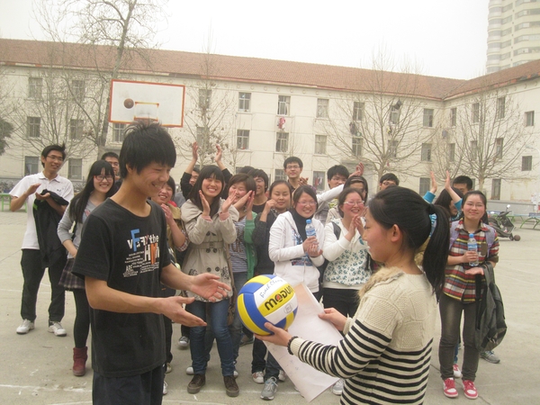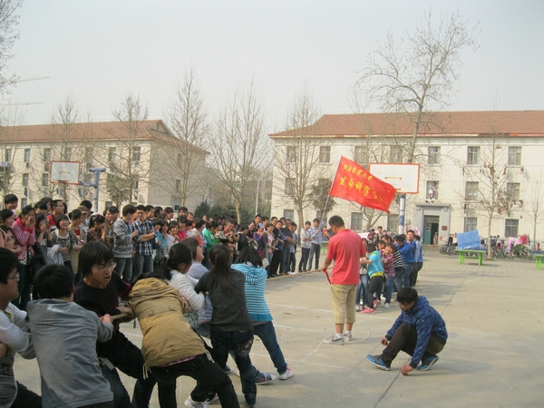 在校东篮球场举行了庆祝女生节的阳光体育运动——拔河比赛。本次比赛的对象是12级全体学生。