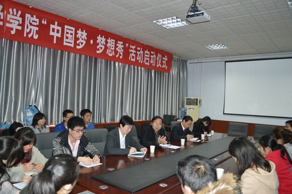 会上,刘全军向全体人员宣读了《关于开展“中国梦·梦想秀”主题教育系列活动的通知》文件,传达了此文件主要内容和此次活动举办的目的。然后马菲以“中国梦”在中央的提出为引子,以“中国梦”与“美国梦”的比较和校优秀毕业生王灵光、柳波的成功经历为论据,做了深入浅出的相关论述,为青年学子给予梦的希望。