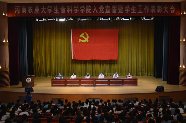 大会的第一阶段是入党宣誓大会。在慷慨激昂的《国际歌》后,刘淑杰宣读了2013年新入党学生名单。之后由程城带领新党员们进行入党宣誓,然后新党员代表和入党积极分子代表进行发言。宣誓大会最后,陈玲鼓舞新党员们不要辜负党组织的希望,不断发扬党的优良传统。