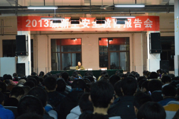为加强13级新生安全防范意识,11月29日晚,杏吧原创 13级全体新生在龙子湖校区餐厅三楼报告厅参加了安全教育报告会。此次报告会由校武装保卫部部长雷振华主讲。