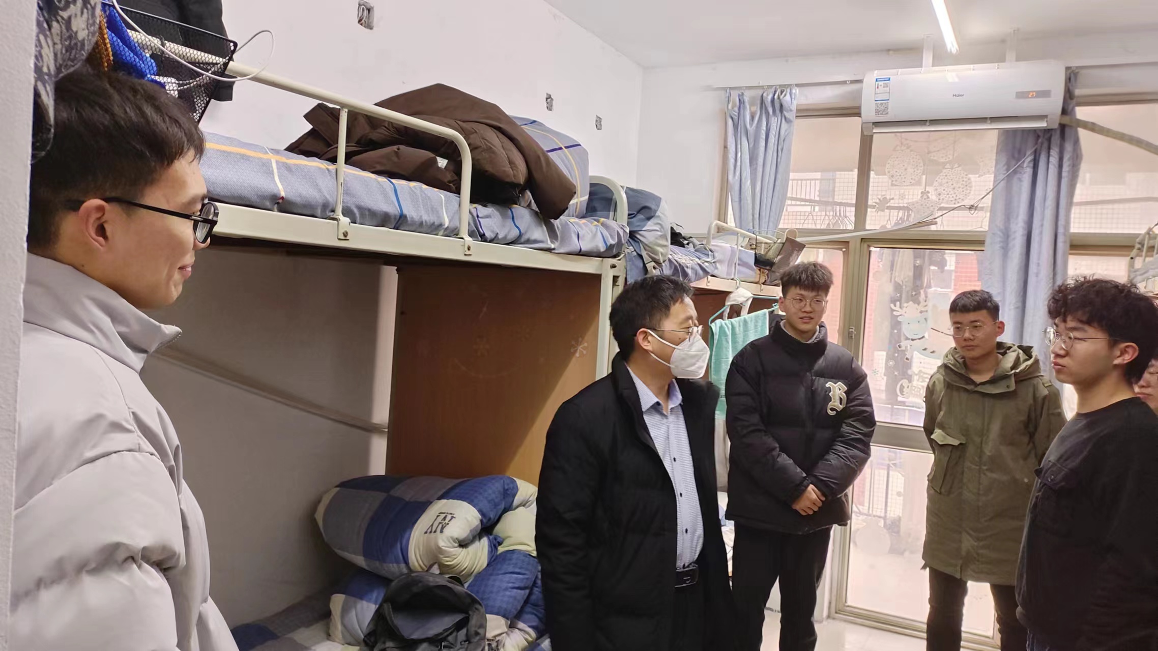 2月12日上午,介晓磊校长、郭战伟副校长和学校相关部门负责人来到报到现场,认真问询入校流程和学生返校情况;院党委书记刘国兵、院长吴建宇、院党委副书记陈明明,院团委书记刘展、副书记张晶,团委老师张琨、陈子璇到报到现场看望值班学生干部,要求大家认真负责做好返校签到工作。同时,院领导深入学生宿舍,重点关注同学们身体健康状况和新学期开学的准备情况,了解和解答同学们返校后在学习生活中遇到的困难和问题,鼓励同学们在新学期要进一步明确学习目标,合理规划学习生活时间,积极参加活动,加强体育锻炼,实现全面发展。最后,老师们还叮嘱大家务必注意防寒保暖,注意安全用电,严格落实学校疫情防控的各项要求。