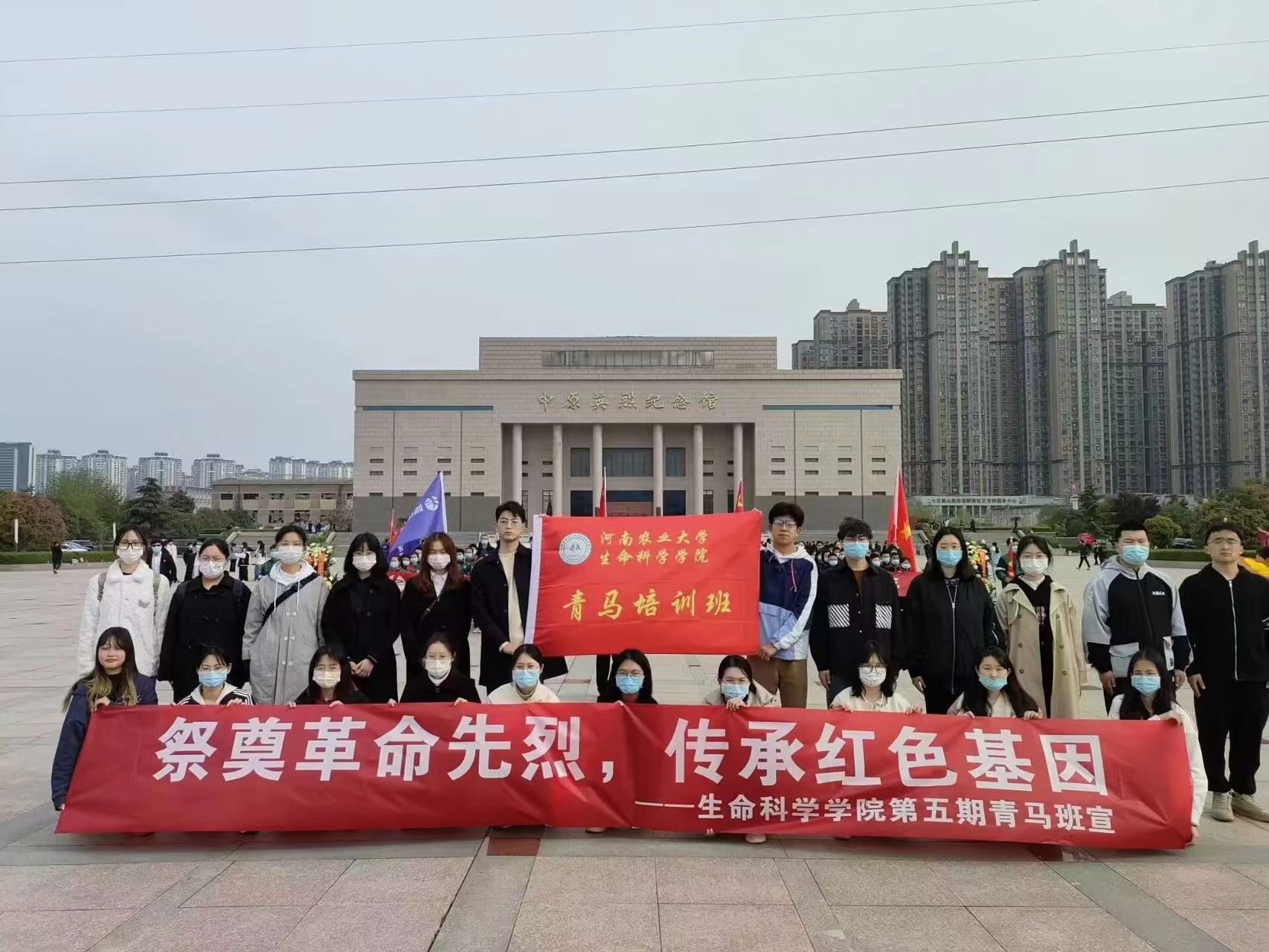 第五期青马班于郑州市烈士陵园开展“祭奠革命先烈,传承红色基因〞主题活动。本次活动由院党委组织委员、2020级辅导员张晶指导,院青马班组织,青马班全体成员参与。