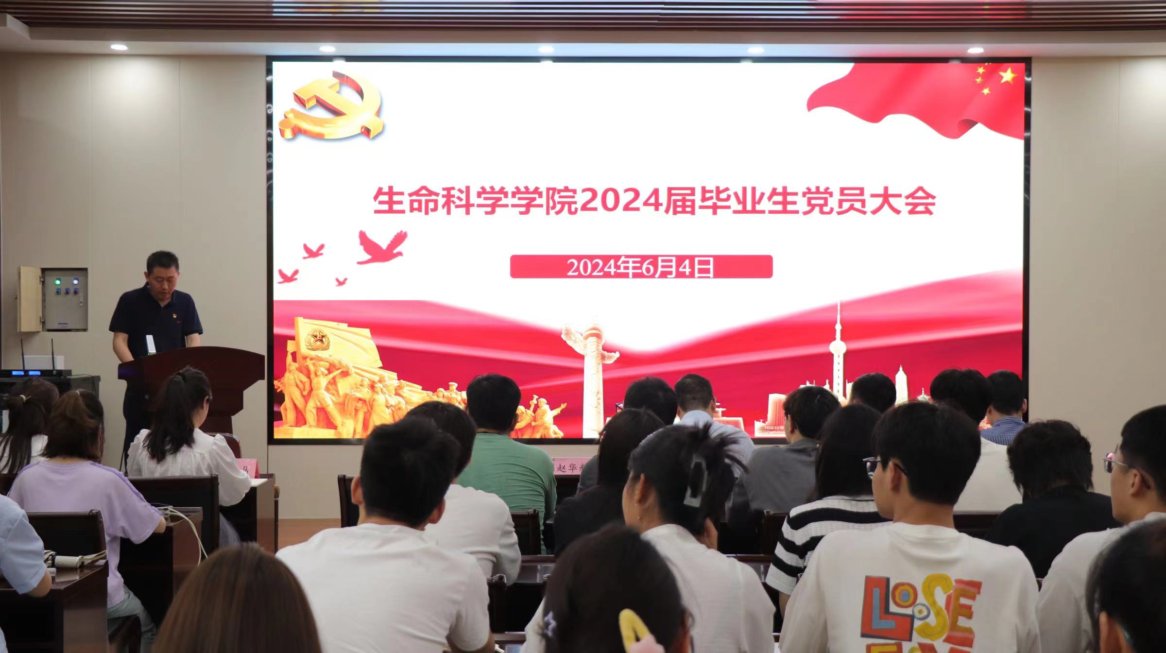 刘国兵首先为毕业生党员上党课,他结合党纪学习教育,以“学纪知纪强信念,明纪守纪做贡献”为题,从党纪学习教育的重要意义、党纪学习教育的主要内容和如何做一名合格的共产党员三个方面,为毕业生上了最后一堂党课。随后,刘国兵带领毕业生党员重温入党誓词。