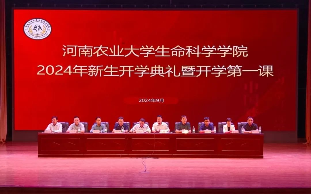 伴随着激昂的国歌声响起,开学典礼正式开始。张会勇宣读聘任2024级新生班主任的决定,学院领导为新生班主任颁发聘书。随后,2022级学生代表刘承铭分享自身经验,希望同学们不负学院老师和学长学姐们对大家的期望,不断开拓创新、锐意进取。新生代表常奕泽代表2024级新生发言,并表示将认真规划大学生活,努力在学业上取得更大成绩。2024级生物科学类八班班主任马培培从自身的经历出发,为同学们分享了自己的见解及建议,并鼓励同学们奋发向上,度过一个完整充实的大学生活;张世昌带领全体新生进行了入学宣誓并合唱校歌《绿色颂》。