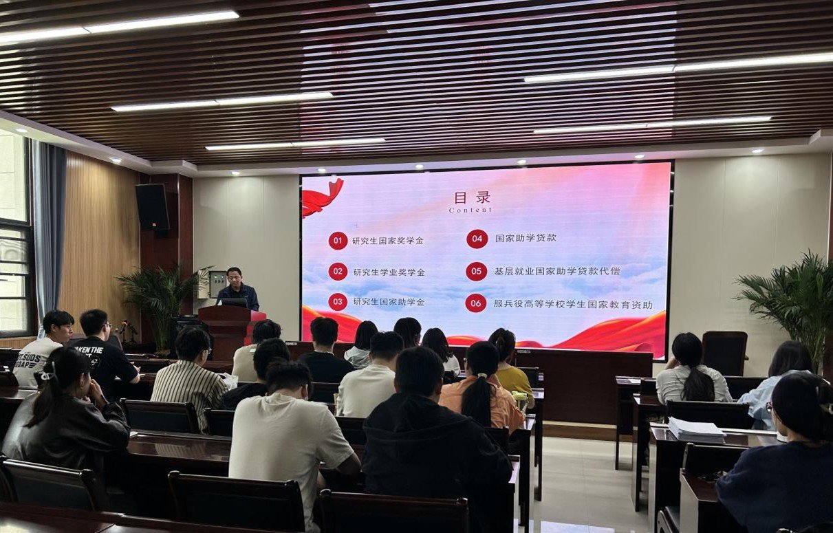 会议伊始,刘展为同学们详细介绍了研究生国家奖学金、研究生学业奖学金和研究生学业助学金的具体内容,为大家讲解其奖励标准、申请条件以及评选流程。随后,他向同学们介绍了国家助学贷款,并分别介绍了高校助学贷款和生源地助学贷款各自的政策要求、申请流程、贷后政策和还款事项等多方面内容,强调同学们要注意国家助学贷款的还款期限,做到及时还款。同时,刘展还为大家解释了什么是基层就业国家助学贷款代偿和服兵役高等学校学生国家教育资助,并鼓励仍处于迷茫阶段的同学踊跃报名征兵,献身国防发光发热。