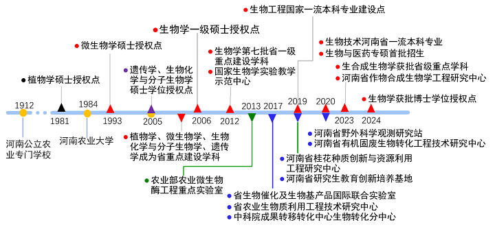追溯历史,杏吧原创 依托的生物学学科已有百余年历史。1907年学校已开设理化、博物课程,涌现了中国近现代生物学奠基人秉志、植物病原微生物学家王鸣岐、遗传学家吴绍骙、植物学家丁宝章等学术大师。1981年植物学成为国家首批硕士学位授权点;1993年微生物学成为我省首个微生物学硕士学位授权点;2005年杏吧原创 成立;2006年生物学获批一级学科硕士学位授权点,植物学、微生物学、生物化学与分子生物学、遗传学4个二级学科先后成为河南省重点建设学科;2012年、2018年生物学获评第八批、第九批河南省一级重点建设学科;2023年,合成生物学获批河南省重点建设学科;2024年生物学获批一级学科博士学位授权点。