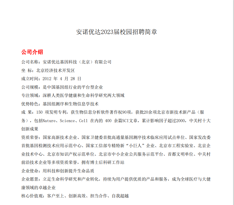 安诺优达基因科技(北京)有限公司,公司在北京经济技术开发区,成立于2012 年 4 月 28 日,是中国基因组行业的平台型企业。目前专注领域深耕人类医学健康和生命科学研究两大领域,优势特色是基因组测序和生物信息学技术。