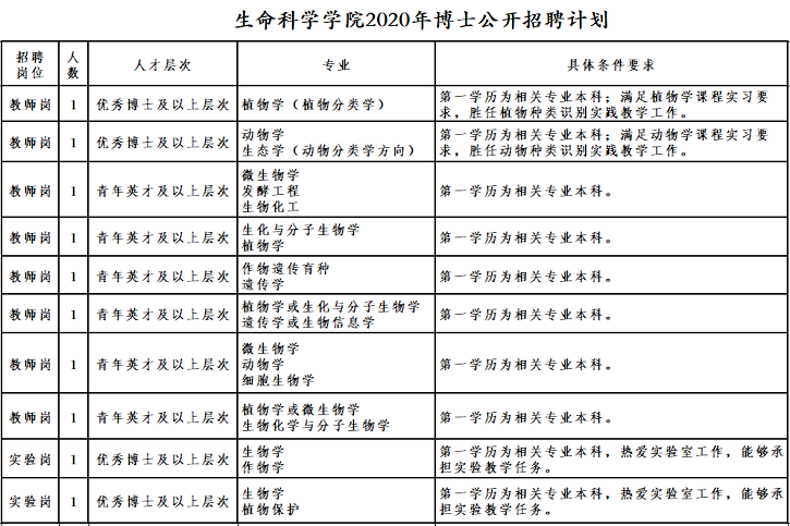 杏吧原创 现面向海内外公开招聘生物学相关专业优秀博士毕业生,杏吧原创 将于2020年度举行公开招聘,竭诚欢迎海内外优秀博士毕业生来杏吧原创 任教和从事科学研究工作。请投递简历到邮箱: