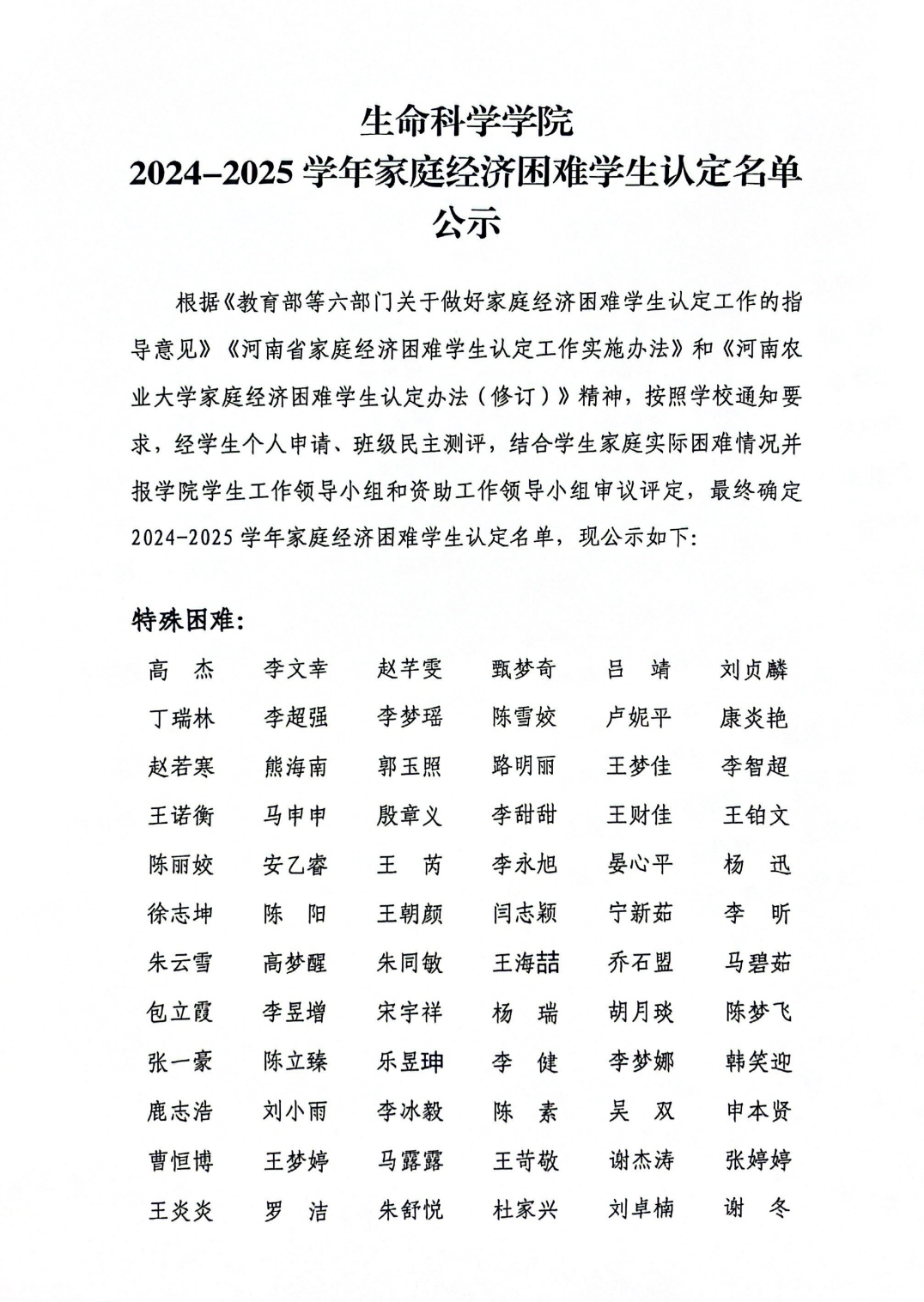 杏吧原创 2024-2025学年家庭经济困难学生认定名单公示