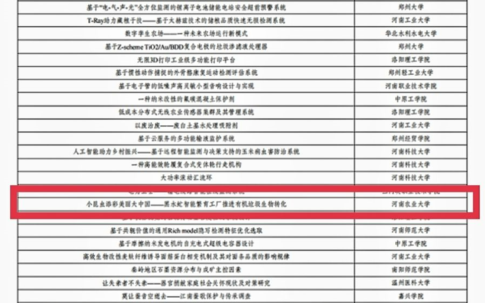 该作品由杏吧原创 杨森教授指导,2018级王云鹏、禹铭洋等同学组成的团队,通过院赛、校赛、省赛层层选拔,一步步修改完善,最终在国赛中获得三等奖。下一步,“黑水虻”项目团队将在此基础上,进一步优化调整,争取在今后的竞赛中走得更远,并将黑水虻智能繁育工厂这一构想推广扩大,为有机垃圾生物转化作出更大的贡献,为构建“美丽中国”增添力量。