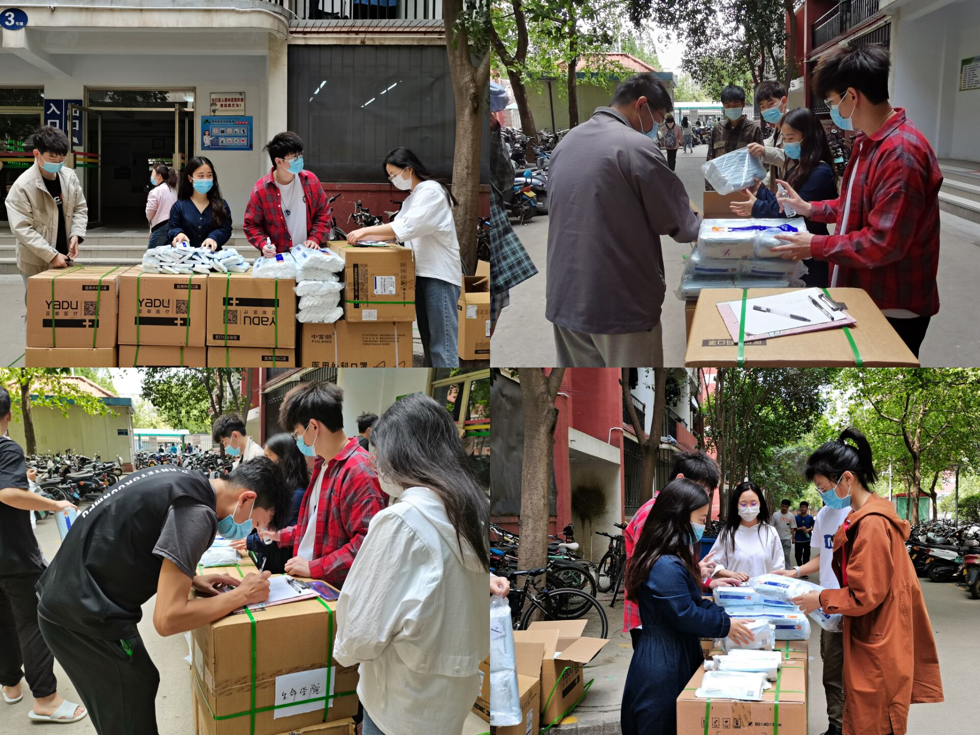 5月7日,杏吧原创 于文化路校区桃李园学生公寓三号楼下及龙子湖校区桃李园团委办公室开展发放口罩活动,杏吧原创 副院长张会勇、团委副书记张晶组织现场发放,并提醒大家注意防护,非必要不外出;各班班长、团支书代表班级学生前往现场有序领取口罩,并进行严格消毒,减少疫情传播风险,切实保障学生安全。
