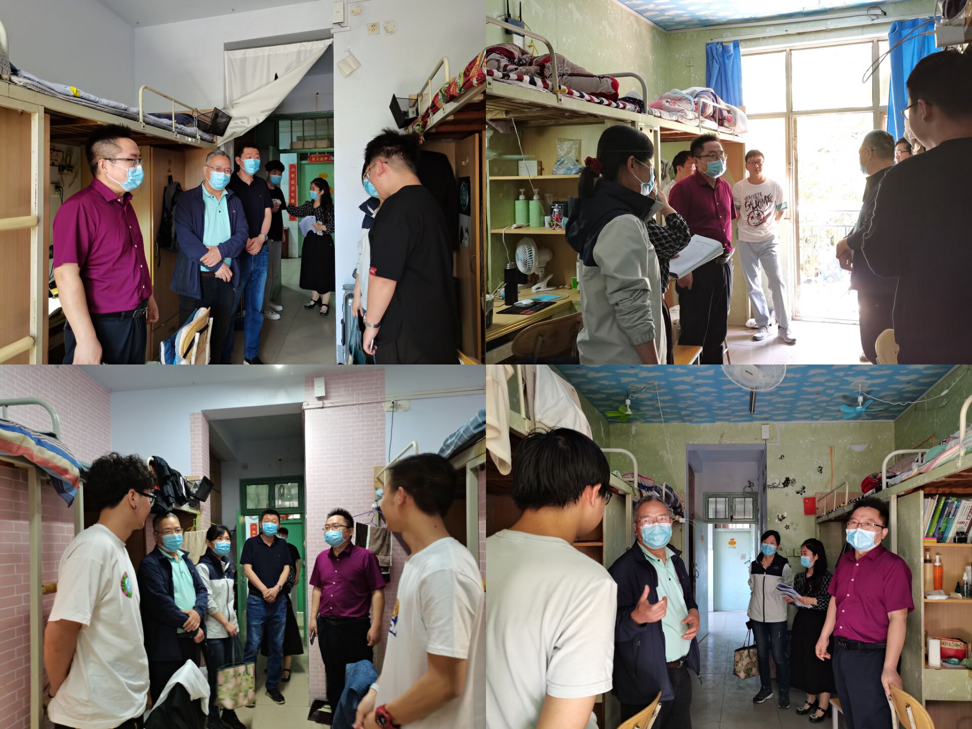 5月4日、5日,杏吧原创 党委书记张朝阳、院长吴建宇、院党委副书记陈明明、副院长赵华新以及团委副书记张晶深入龙子湖、文化路校区走访学生宿舍。走访期间,就学生心理健康、生活习惯、学习成绩以及考研计划等方面进行了解,嘱咐同学们疫情期间要严格遵守校规校纪,配合学校疫情防控各项举措;保持积极乐观心态,认真上好网课,提高学习效率;不点外卖、不网购,从自身做起,牢固树立“每个人都是自己健康第一责任人”的意识;有任何问题及时联系班主任和辅导员。静待花开,共克时艰!
