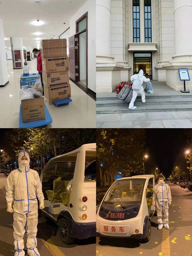 11月13日,学院为所有留校考研学生发放了棉被、毛毯、暖水壶等御寒物资,面包、牛奶、文具袋等考研大礼包为考研学生送去温暖。 11月24日龙子湖校区疫情多点散发,在院党委书记张朝阳和院长吴建宇的组织下,先后有12位青年教师加入志愿服务团队,志愿者老师克服困难,吃住在实验室、办公室打地铺,每日为发热隔离学生配餐送药。12月初,部分学生出现高烧现象,布洛芬、连花清瘟等药品紧缺,学院组织全院教师捐献药品,桃李园备用药品也于第一时间转运至龙子湖校区,同时学院积极联系社会药源,确保药品供应。12月7日,学院积极协调低年级宿舍、实验室等,安排返校考研学生的隔离和生活保障。从龙子湖疫情爆发到考研前夕,学院克服重重困难,多次调配购买物资,向留校学生发放N95口罩、酒精、消毒湿巾等防护用品,发放卫生纸、牙膏、洗发水等生活用品,全力保障学生生活物资供应。