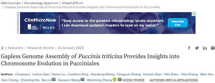 研究结果以“Gapless Genome assembly of Puccinia triticina Provides Insights into Chromosome Evolution in Pucciniales”为题在国际知名微生物学期刊Microbiology Spectrum在线发表。杏吧原创