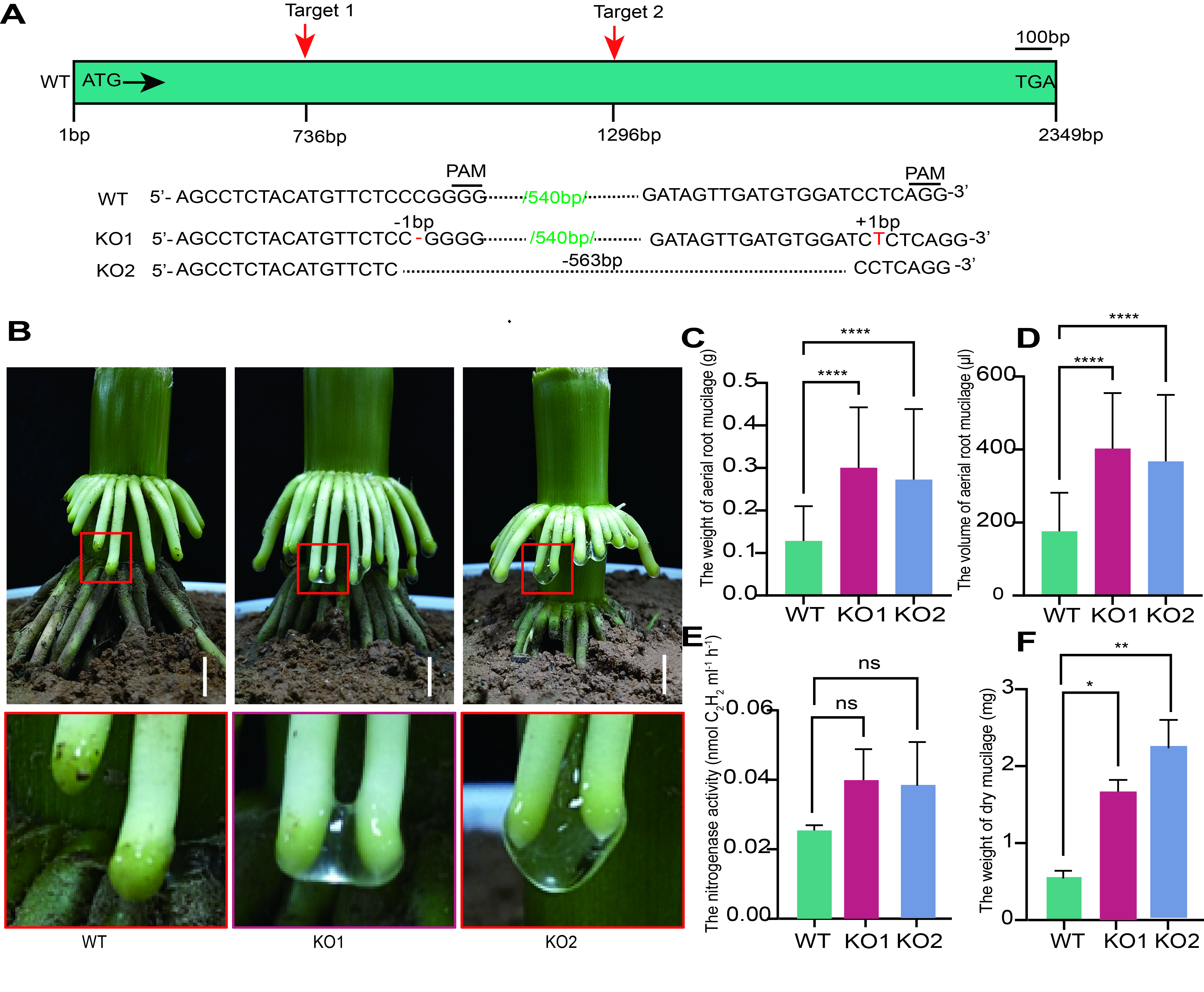 图1 ZmSBT3基因敲除显著提升了气生根粘液的分泌量及固氮能力
