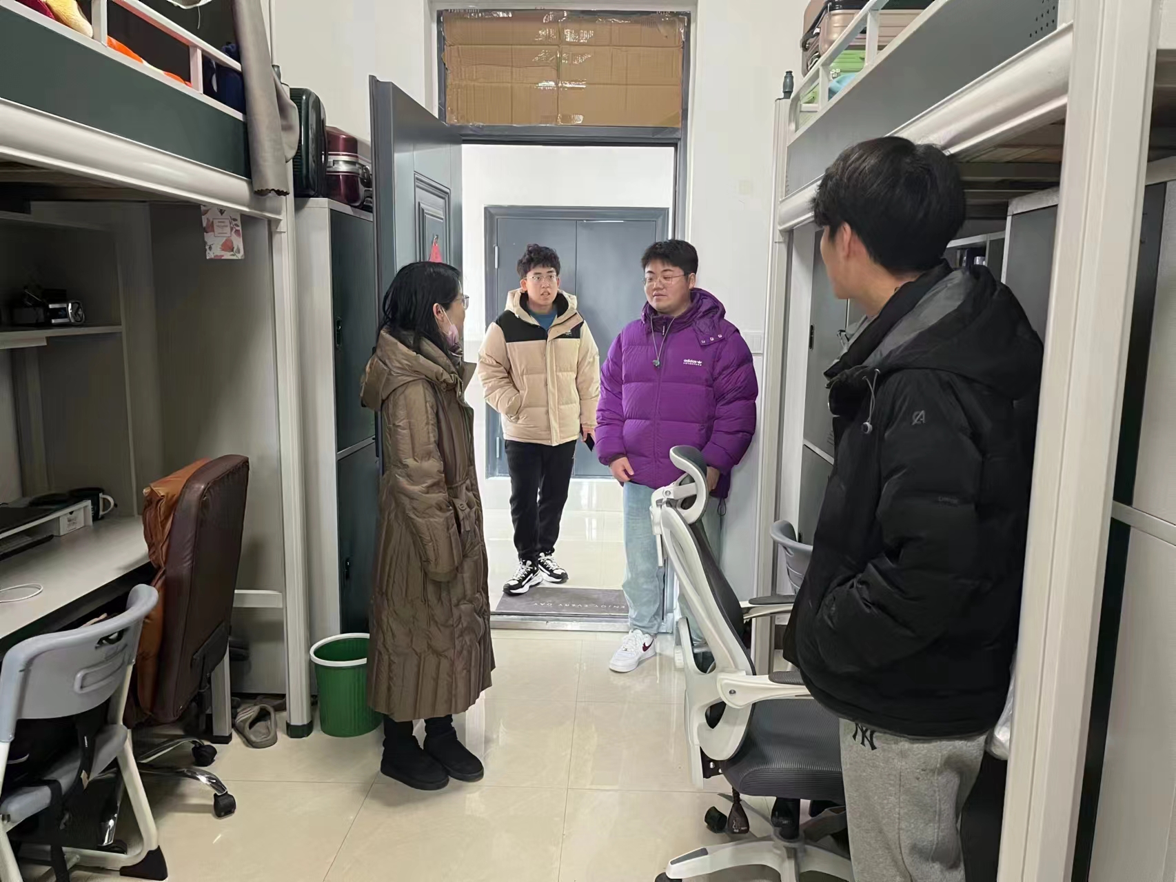 走访期间,刘国兵就学生身心健康、生活习惯、学业计划等方面与同学们进行亲切交流,鼓励同学们合理制定学业计划,为美好的大学生活打下良好的基础。同时,他要求党员、学生干部和宿舍长要发挥带头作用,带领同学们认真开展学习、养成良好习惯、做好人生规划。针对走访过程中发现的安全、卫生问题,刘国兵要求,各个学生宿舍要对目前存在的问题进行整改,尤其要加强用电、防火等安全隐患防范,确保宿舍安全。最后,刘国兵叮嘱大家要提高自我安全防范意识,自觉遵守宿舍安全管理的规章制度,养成良好的生活习惯,做到在宿舍内严禁吸烟、严禁使用大功率电器等,保障自身和他人的人身财产安全。