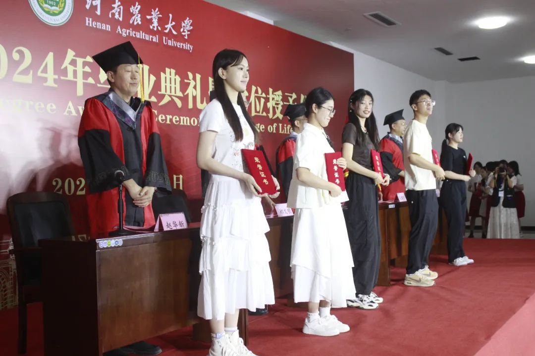 学士学位授予决定;学院领导老师为2024年优秀毕业生代表颁发证书。