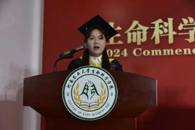 本科毕业生代表沈欣悦同学发言,“人生南北多歧路,君向潇湘我向秦”,感谢学院让她遇见令其受益良多的老师,汲取博采众长的理论学识和锐意进取的科研精神,“明德自强,求实力行”的铮铮校训始终铭刻在她的内心,激励着她不忘初心,砥砺前行。
