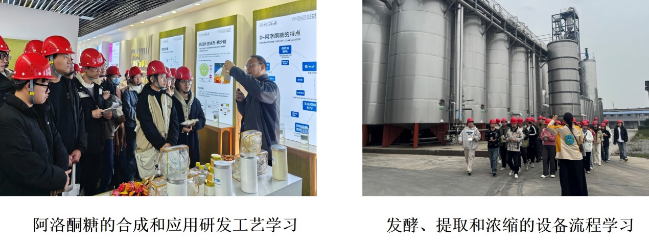 在中大恒源生物科技股份有限公司的研发中心,同学们了解了功能性代糖合成研发的最新进展,随后走进阿洛酮糖、栀子黄等产品的生产车间,全程跟踪“原料筛选—微生物发酵—提取纯化—浓缩精制—检测—包装”的完整流程。结合《微生物工程》、《生物反应工程与设备》和《生物工程工厂综合设计》等课程知识,同学们就“工艺优化与设备选型”“产能放大与能耗控制”等问题与技术人员展开讨论。
