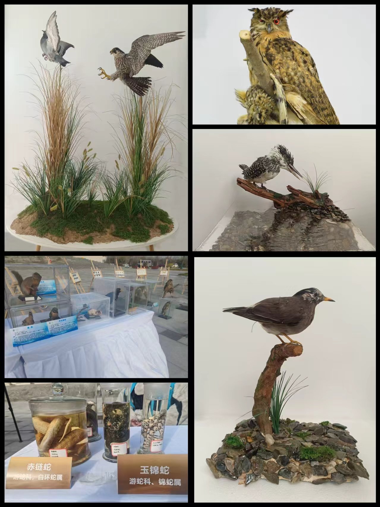 本届多彩生命文化节精心设置了“生命之源”“生命之美”“生命之趣”“生命之映”四大主题展区,各区域均围绕动物主题展开,亮点纷呈且内容丰富。走进“生命之源”展区,形态逼真的动物标本整齐陈列,每一件都栩栩如生,仿佛将动物的鲜活姿态定格于此。一旁的解剖示意图清晰明了,搭配创意生物结构泥塑,生动诠释出生命构造的精妙奥秘。而前沿科研成果展板则集中呈现了学院在动物科学领域的最新探索成果,详实的内容与直观的展示,让同学们得以沉浸式触摸学科前沿,近距离感受生命科学研究的独特魅力。步入“生命之美”展区,以动物为核心的艺术作品错落分布。树叶拼贴画将自然素材与动物形象巧妙结合,素描与彩绘作品则以细腻笔触勾勒出动物的灵动神韵,这些作品既展现了自然生命的本真美态,又融入了创作者的奇思妙想,让自然意趣与艺术创意在此处实现了巧妙交融,引得不少同学驻足欣赏、拍照留念。