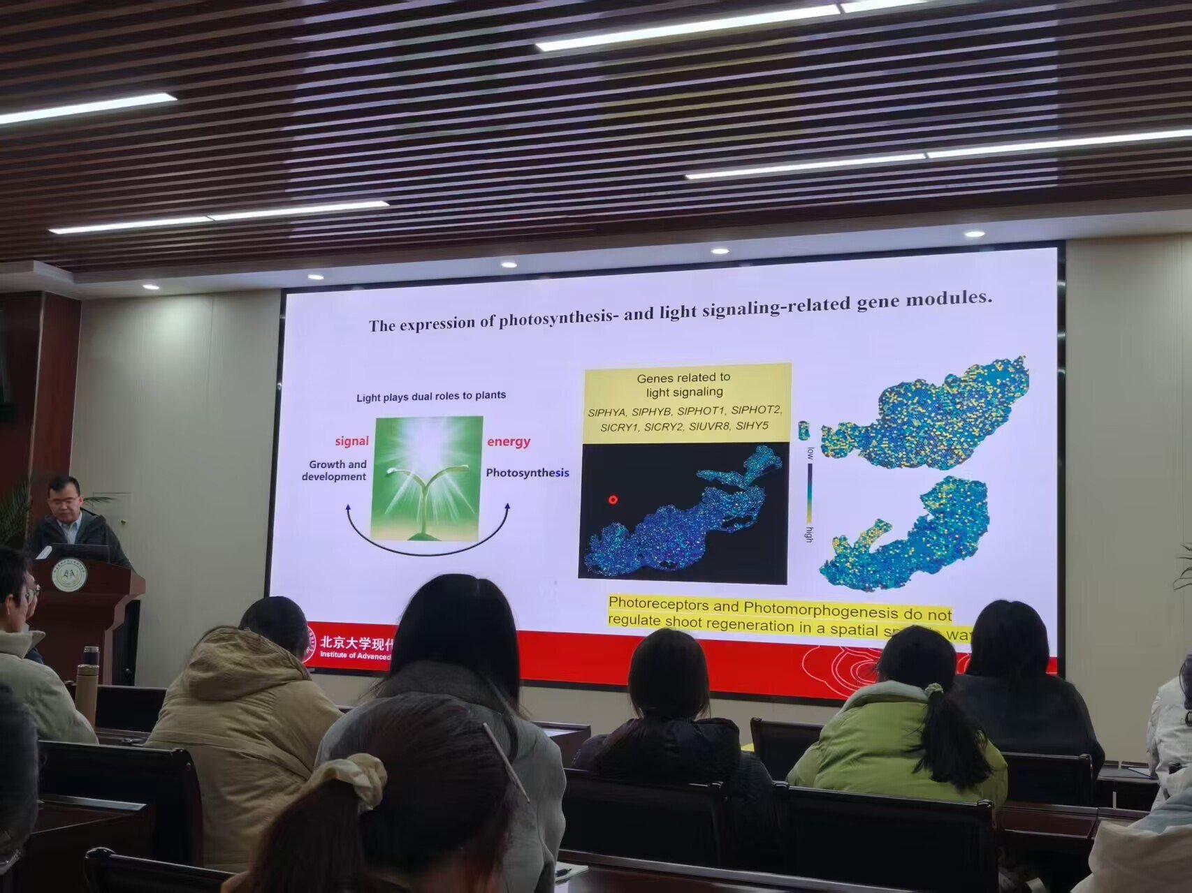 李博生研究员的报告则聚焦于前沿组学技术,他以《番茄从头再生的高分辨率单细胞空间转录组图谱》为题,深入介绍了面向端粒到端粒(T2T)完整基因组组装的选择性测序新策略。重点分享了其团队如何利用空间转录组技术,构建番茄叶片离体再生过程中细胞命运转变的高分辨率时空图谱,揭示了再生关键阶段的细胞异质性与基因调控网络。报告还对这项技术在解析植物发育、作物改良等领域的应用前景进行了展望。