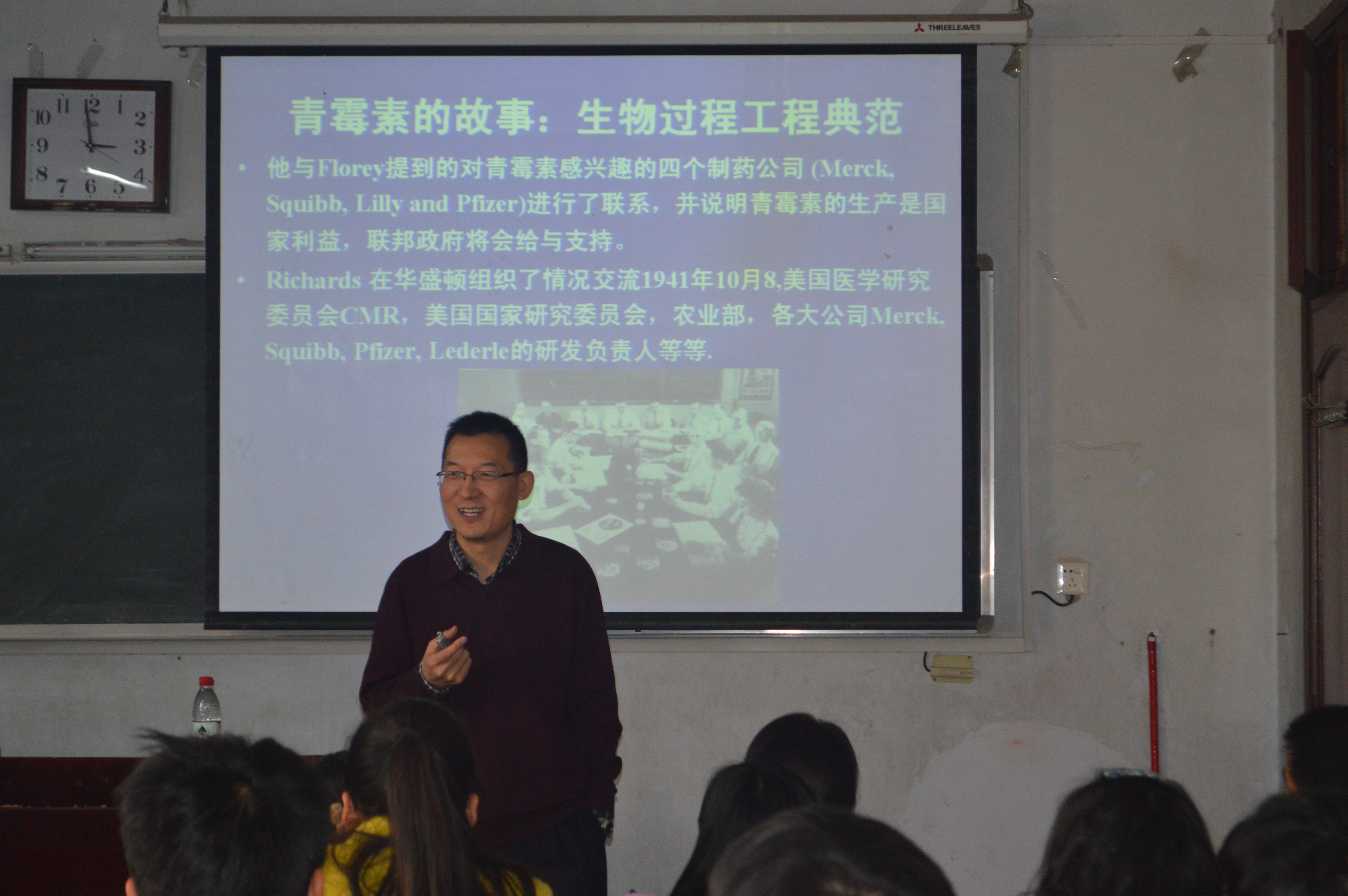 邢建民老师的第一讲以“青霉素的故事:生物过程工程典范”为题,通过青霉素的发现、发酵及应用的生动故事,介绍了发酵工程关键技术,让学生了解中国生物技术发展的短板和方向。邢老师的讲课图文并茂、生动形象,赢得了学生的一致好评。在以后的7次课中,将均有专家的讲课及学生对文献的述评。