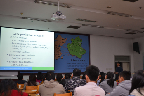 陈楠生教授为研究生公开课作了题为《生物信息学和农业基因组数据的深度挖掘》的学术讲座。陈楠生博士是加拿大Simon Fraser大学生物化学与分子生物学系终身教授,生物信息学和基因组学专家。报告主要分为参考基因组构建、基因组注释、遗传多样性、基因表达和调控以及基因组分析最新进展五个部分。陈教授结合具体的研究案例和生物信息学软件对各个模块进行了详细的讲解。随后又对生物信息学、构建高质量参考基因组和基因组注释、GWAS、以及三代DNA测序技术对基因组学分析的意义做了针对性讲解。王道文研究员就讲座的意义和同学们本领域科研中需注意的问题做了总结发言。