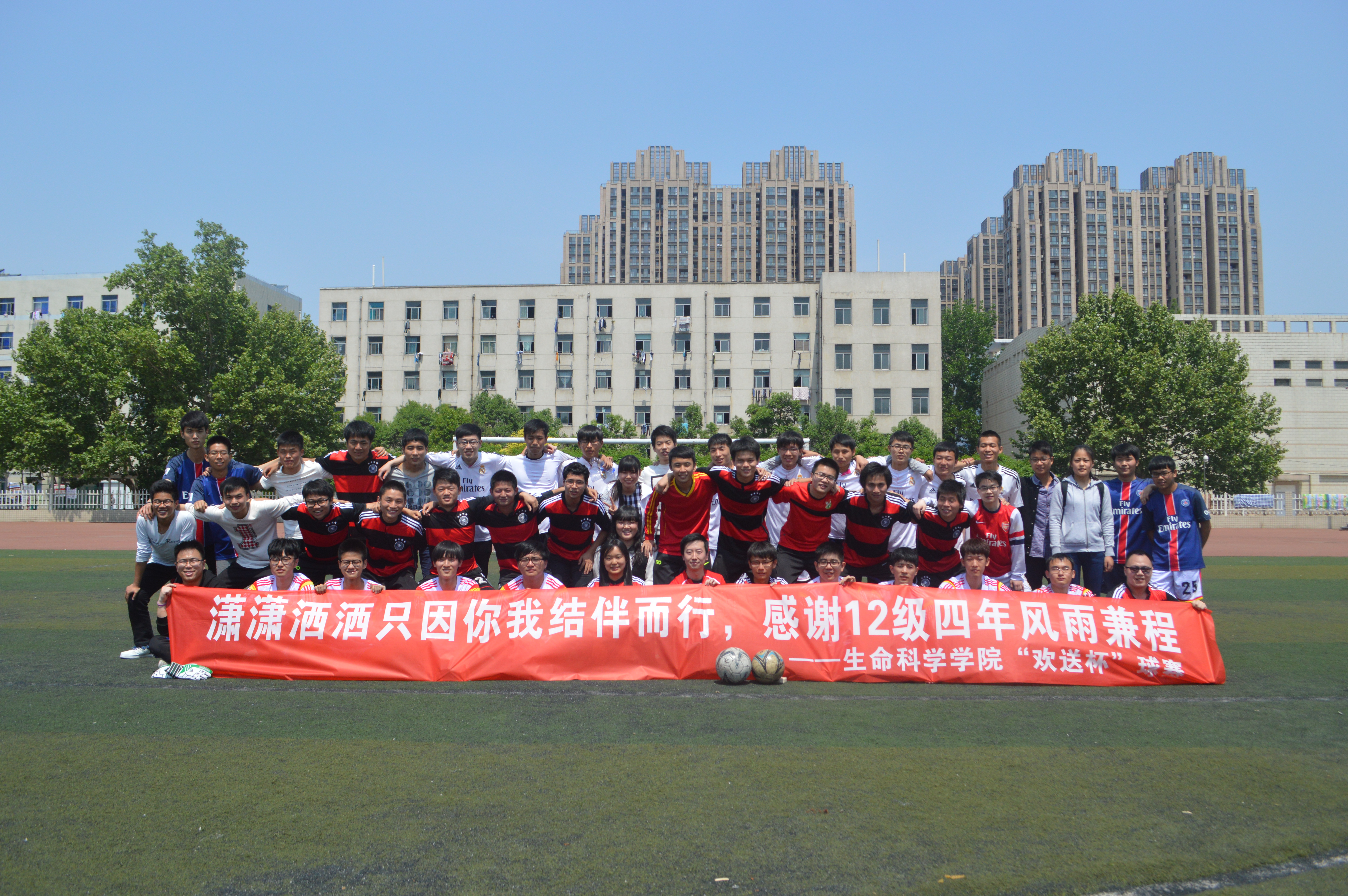 比赛最后毕业生与足球队成员亲切合影留念,留下大学时光最美好的回忆;团委书记程城也深深祝愿我们的12级毕业生在未来的工作、学习和生活中要严格要求自己,踏实工作,积极向上,为实现“中国梦•农大梦”而努力奋斗!(文/黄 笑 孙一波 图/周梦蝶)