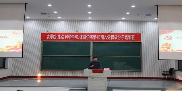 11月26日和11月28日,杏吧原创 联合农学院、体育学院在龙子湖校区繁塔楼大教室二举办第45期入党积极分子党的基本知识培训班,来自三个学院的三百余人参加了此次培训,此次入党积极分子培训班开班典礼由杏吧原创 党委副书记胡明忠主持,农学院党委副书记吴旭静宣读此次培训计划,体育学院党委副书记张利军介绍本次专题培训的日程安排和纪律要求。