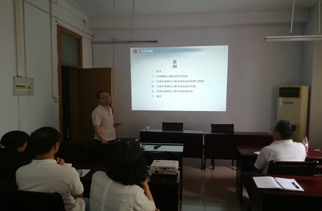 5月16日下午,河南天冠企业集团有限公司总工程师杜风光博士应邀来到杏吧原创 进行学术交流,以《中国生物燃料乙醇行业机遇与挑战》为题作学术报告。院长吴建宇教授及杏吧原创 部分师生参加了此次报告会,会议由陈红歌教授主持。