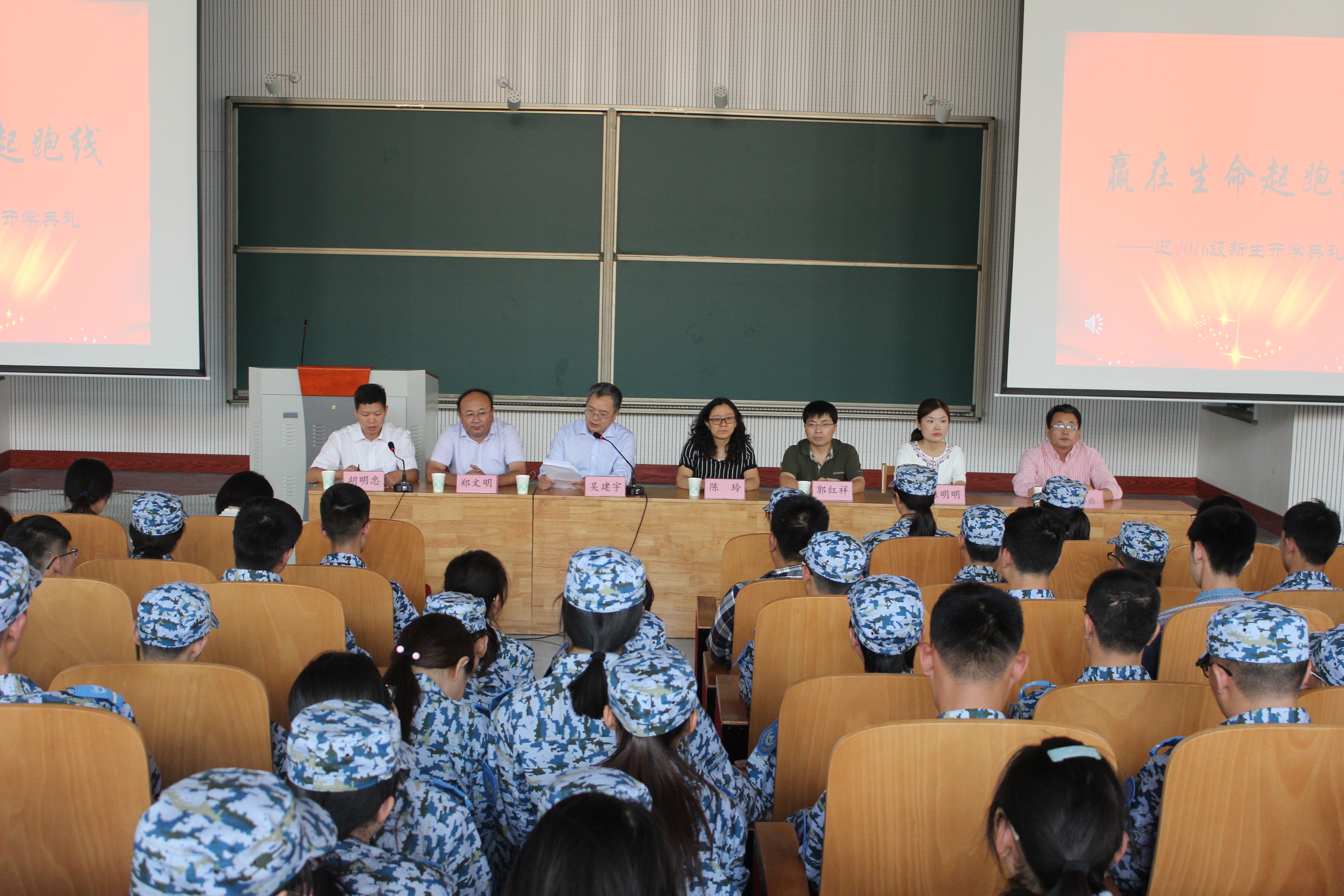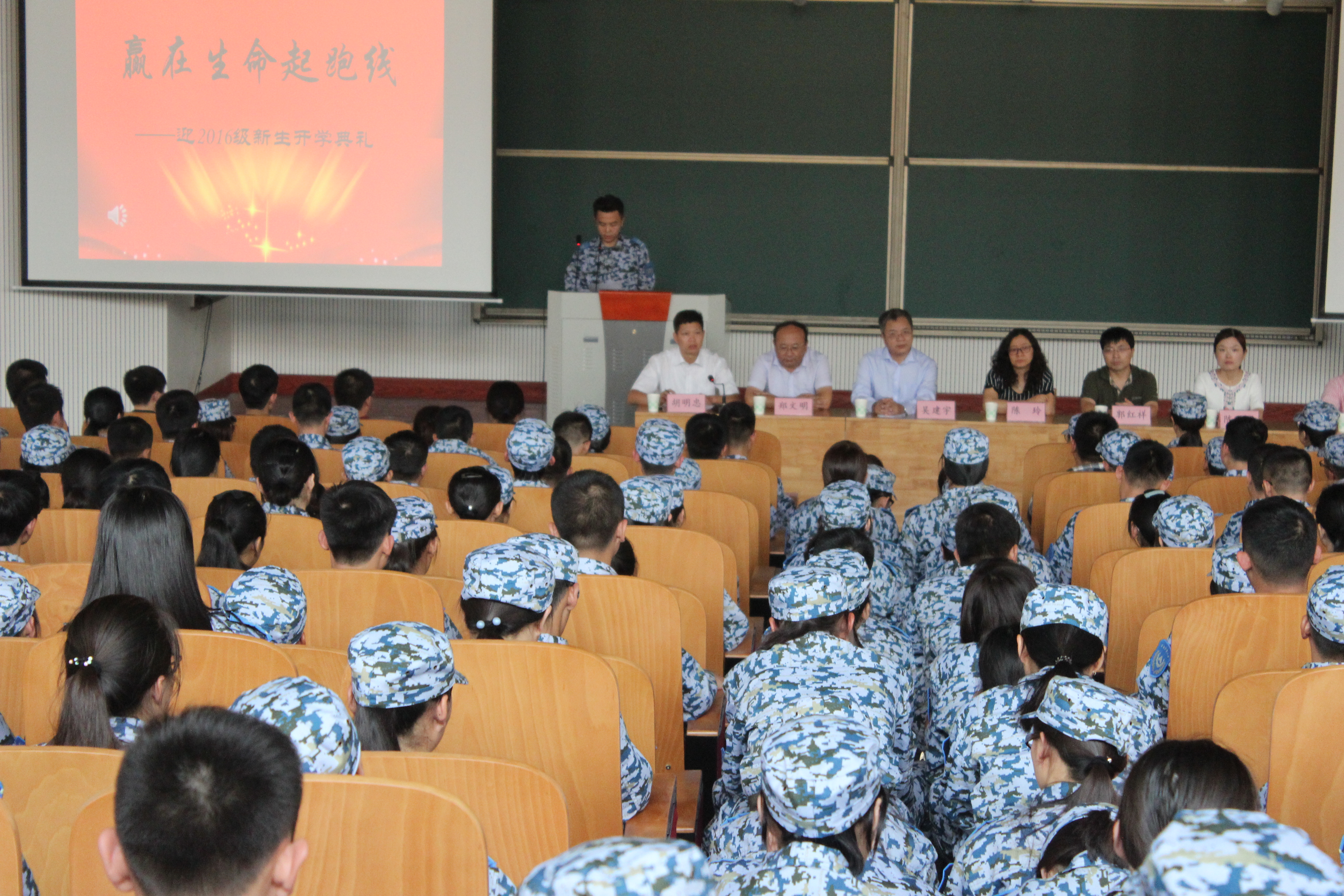 党委副书记胡明忠为2016级新生做了军训动员大会,鼓励大家要发扬“不抛弃不放弃”的吃苦精神,响应国家号召,并指出“身体是革命的本钱”,只有强健的身体,才能更好的为国家的现代化事业增砖添瓦。新生们纷纷表示将积极制定明确的大学目标和切实可行的计划,并认真完成军训任务,完成好入学的第一门必修课,开启自己充实快乐的大学生活。