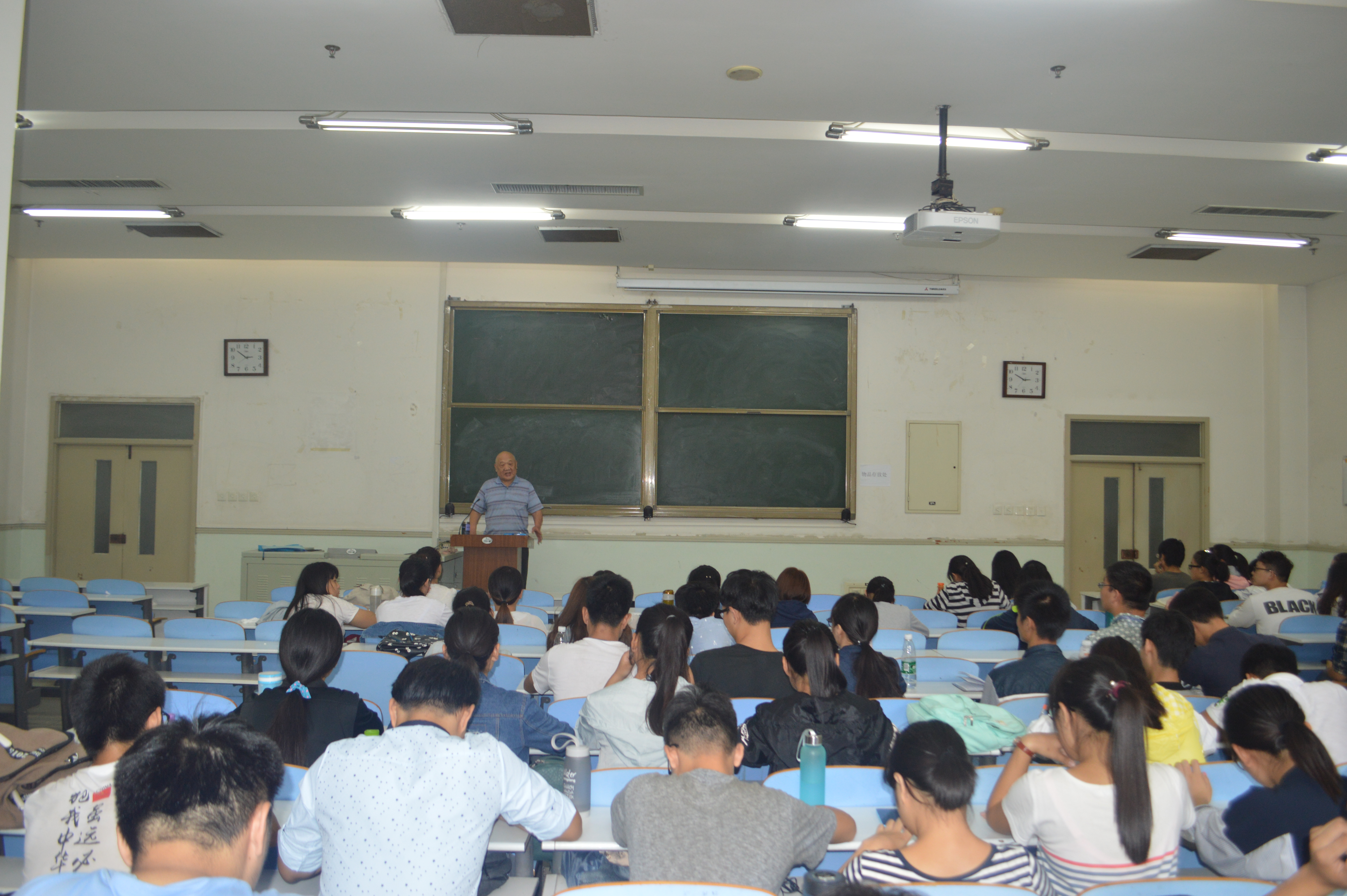 于文化路校区工程楼举行大学生成长成才报告会。此次报告会由党委副书记胡明忠主持、李有田教授主讲。15级班长支书和班级代表参加了此次报告会。