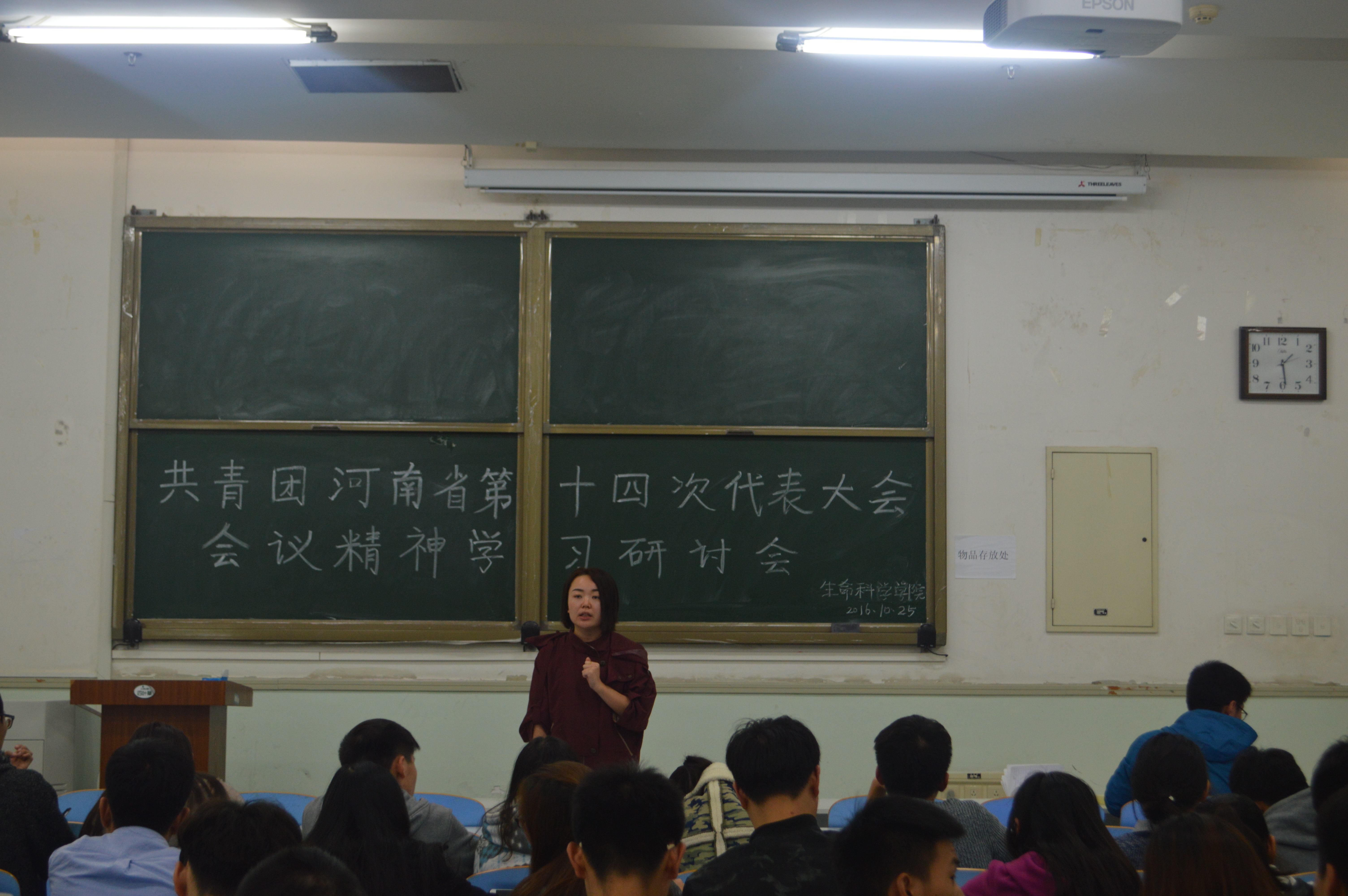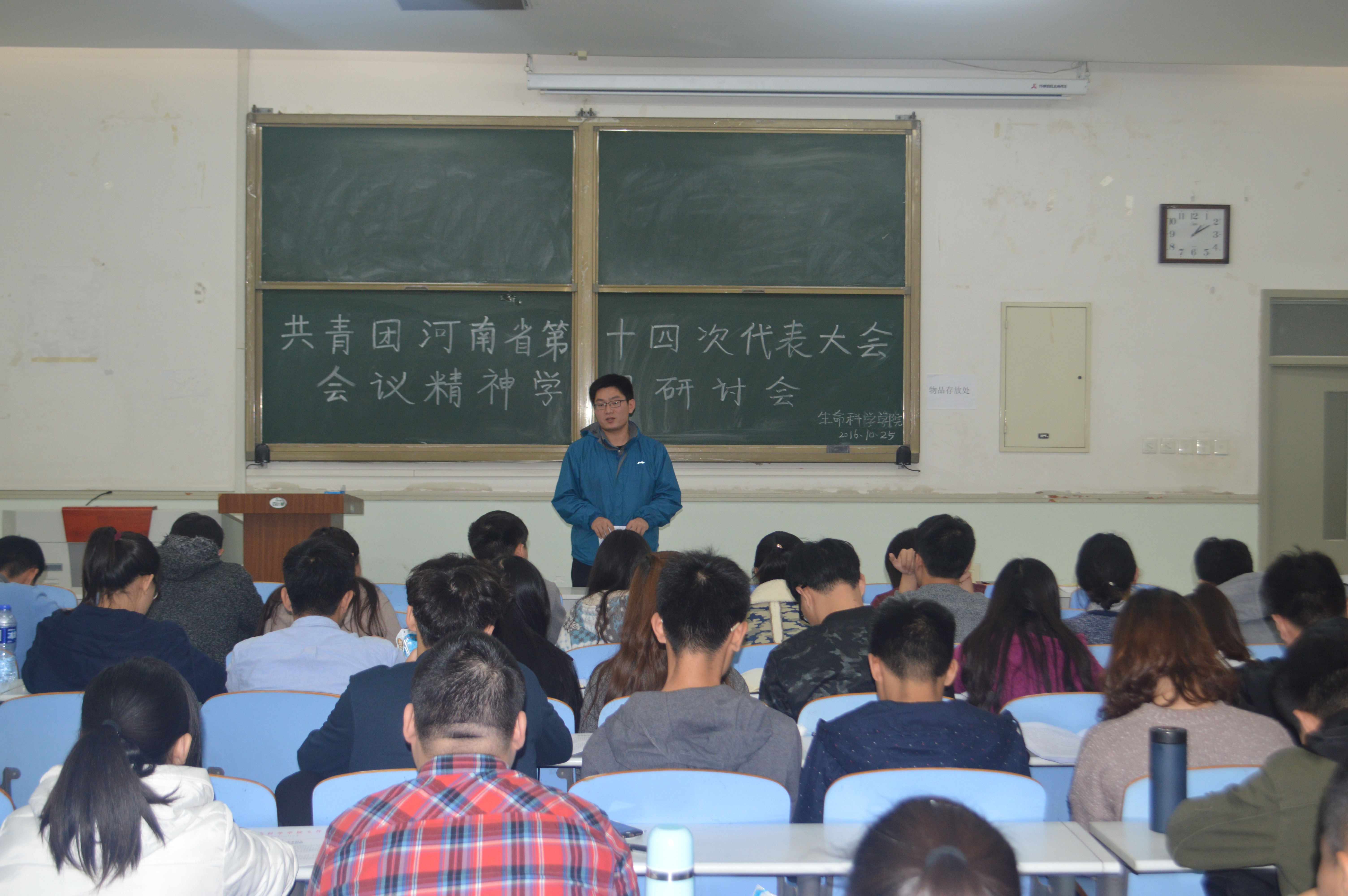 在文化路校区工程楼102教室召开了共青团河南省第十四次代表大会会议精神学习研讨会。会议由院团委书记雷雯主持,团委副书记黄笑,团委委员及干事,14、15级各班班长、团支书以及学院其他学生干部参加了此次研讨会。