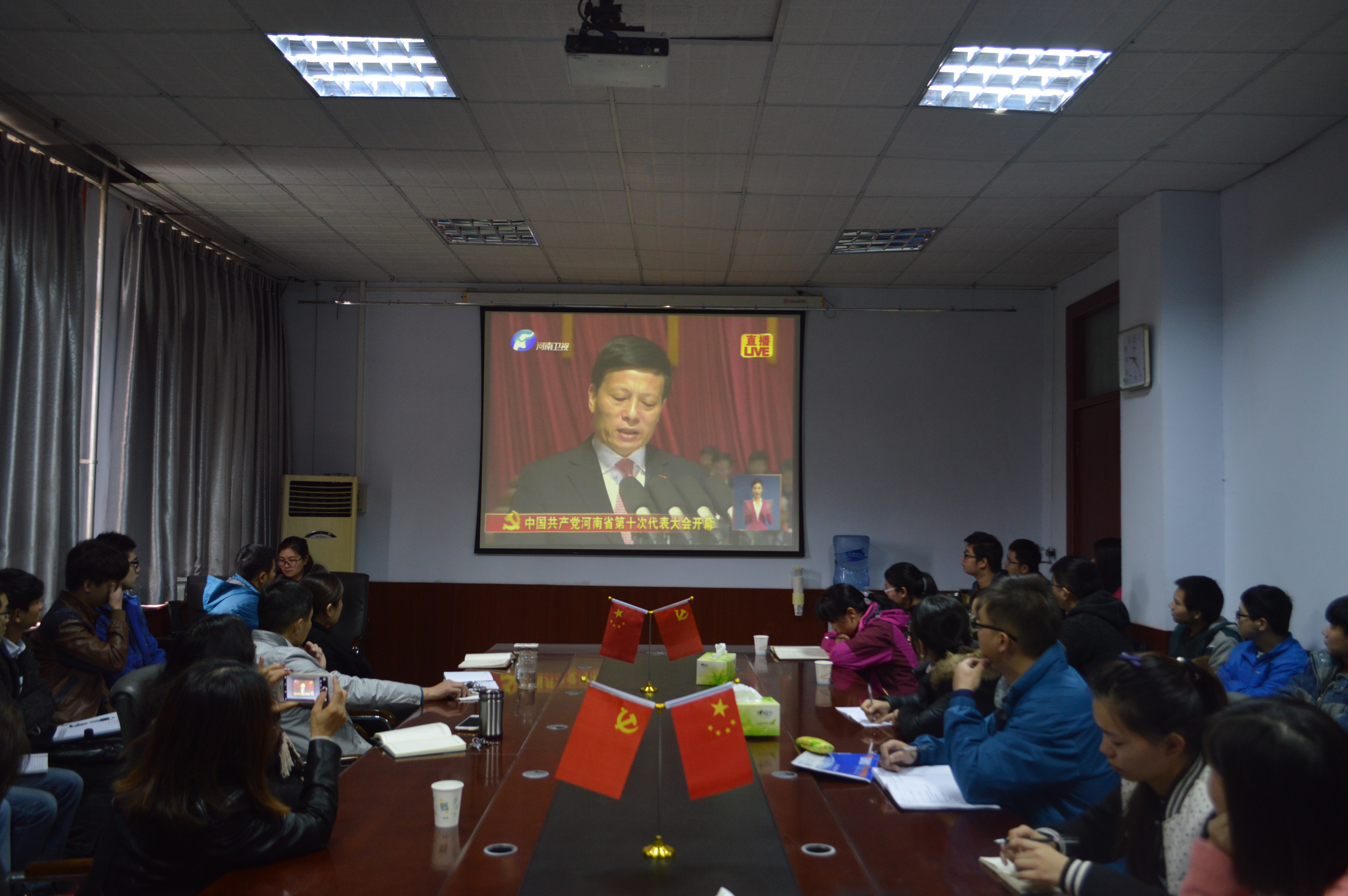 党委组织全体党员和师生(没有课的)在文化路校区一号楼309会议室集中观看学习中国共产党河南省第十次代表大会开幕式。