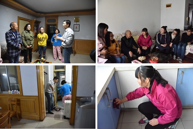 活动伊始,院党委副书记胡明忠与组织员李晓分别带领学生党员志愿者进入农大社区家属院退休职工的家中了解基本情况,老教授对他们的到来表示热烈欢迎,并对他们的家庭情况做了简单介绍。党员志愿者认真倾听并询问老人的生活起居及身体状况,虽然是短暂的聊天,但从老人们流露的眼神中看到了内心的温暖。接着,志愿者团队从实际出发,积极帮助他们解决困难,为老人打扫卫生、擦拭玻璃、整理房间,简单的帮助与陪伴,让老人感受到了志愿者团队发自内心的热情与温暖。最后,老人与志愿者团队合影留念,并对他们表示感谢。