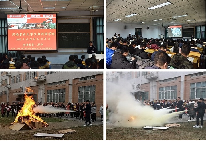 在讲座中,围绕消防知识、消防意识、消防工具三大模块,结合近年来全国发生的典型火灾事故,运用图片资料和视频资料,对火灾发生、发展、熄灭的基本规律和特点以及如何防范火灾的发生、初期火灾的扑救和组织人员疏散、火场自救逃生方法等进行了深入浅出的讲解,全面介绍了日常生活中应注意的消防安全细节等知识。在消防演练环节,彭冲教员现场指导大家学习使用各种灭火器材进行灭火,提高了广大师生面对火灾的实际操作能力,让各位老师和学生对消防安全的重要性有了更深的理解。