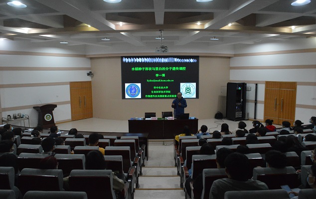 李一博教授及其所在的团队长期围绕水稻粒形八种变化方向的调控机制、水稻粒形G蛋白信号传导机制、水稻垩白QTL基因的克隆与功能研究、水稻垩白抗自然高温的分子机制等开展科研。在本次报告会中,李一博教授以《水稻种子形状与垩白的分子遗传调控》为题,着重介绍了水稻种子大小与垩白蕴含产量与品质、种子形状发生与发育等关键学科问题,为在场师生通俗生动地展示了他们团队关于水稻种子大小以及垩白这两个重要性状的近期研究成果。