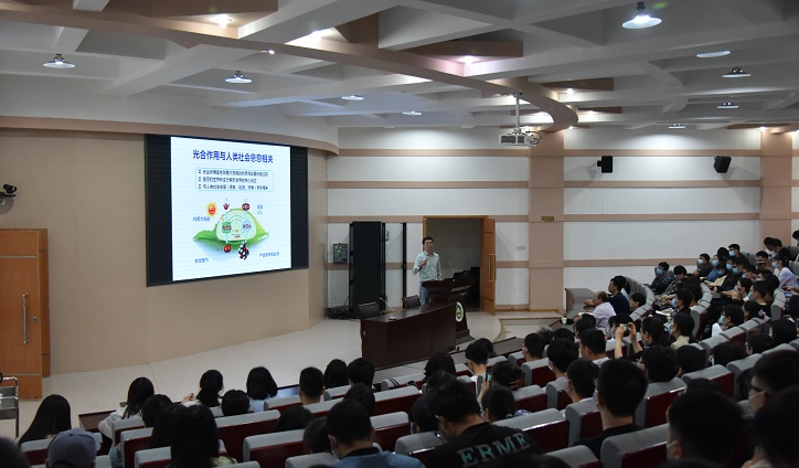 林荣呈以《光调控种子休眠与萌发的分子机理》为题,围绕种子休眠与萌发在农业生产中的重要意义、植物感知光的早期研究、phyB-RVE1-RGL2调节种子休眠与萌发的分子机理等方面,讲解了植物如何精确分辨太阳光的波长、方向、强度和周期等信息,以及光如何调控种子的休眠与萌发过程,并对在场师生提出的问题进行了交流和解答。