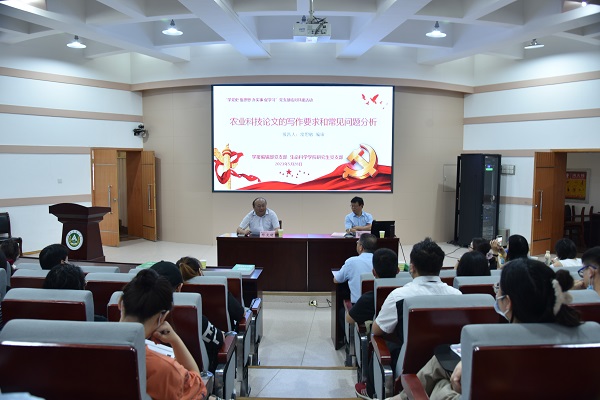 杏吧原创 副院长郑文明主持会议,并介绍了党支部结对共建的作用和意义。学报编辑部常思敏编审作了题为《农业科技论文的写作要求和常见问题分析》的学术报告,从理论性、实用性、准确性等方面详细介绍了科技论文写作相关注意细节。